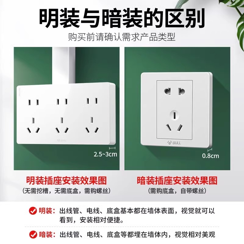 公牛15孔插座明装超薄墙壁扦座多孔位多功能插座大板明线超薄十孔