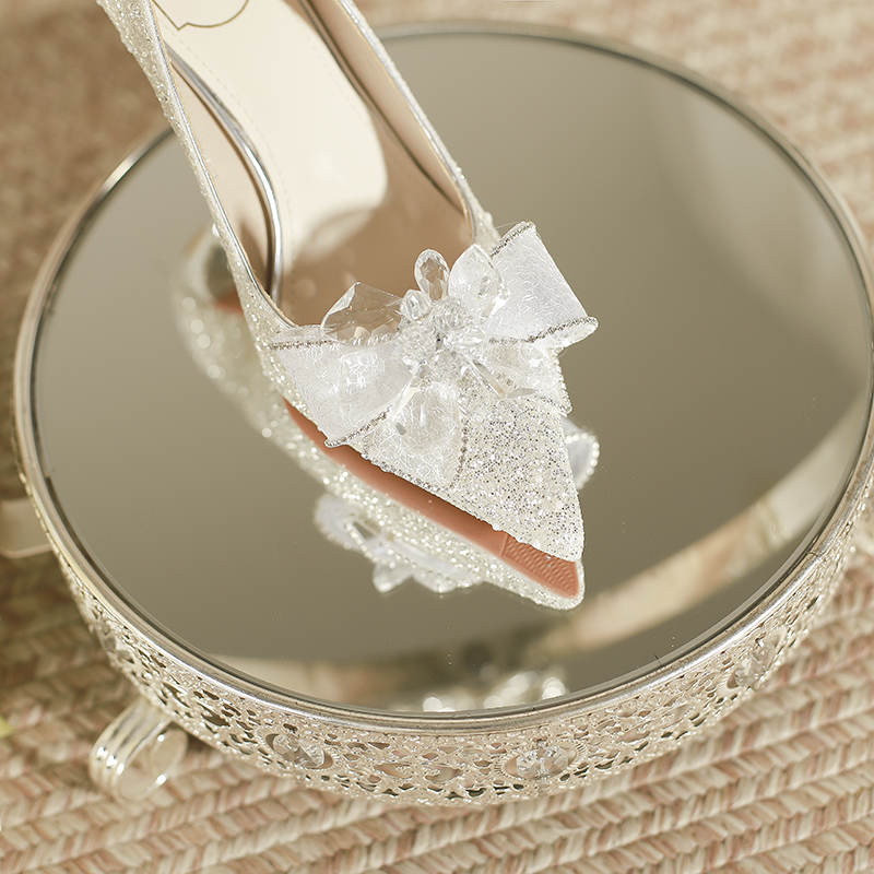 银色婚鞋新娘鞋主婚纱礼服水晶鞋2025年新款亮片伴娘高跟鞋女细跟