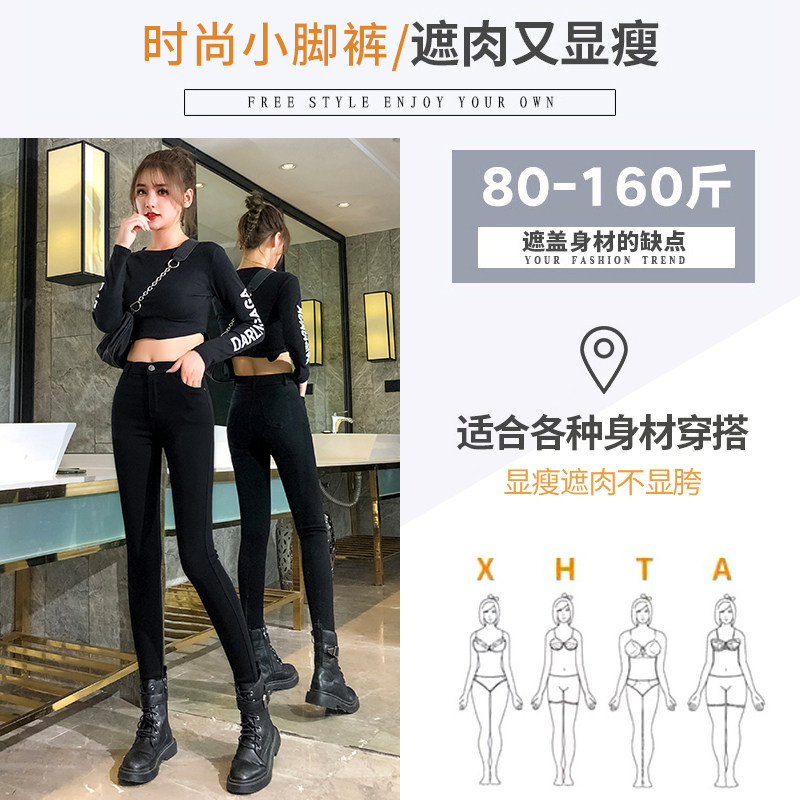 黑色打底裤女外穿春秋季2025新款高腰夏薄款加长铅笔小脚小黑裤子