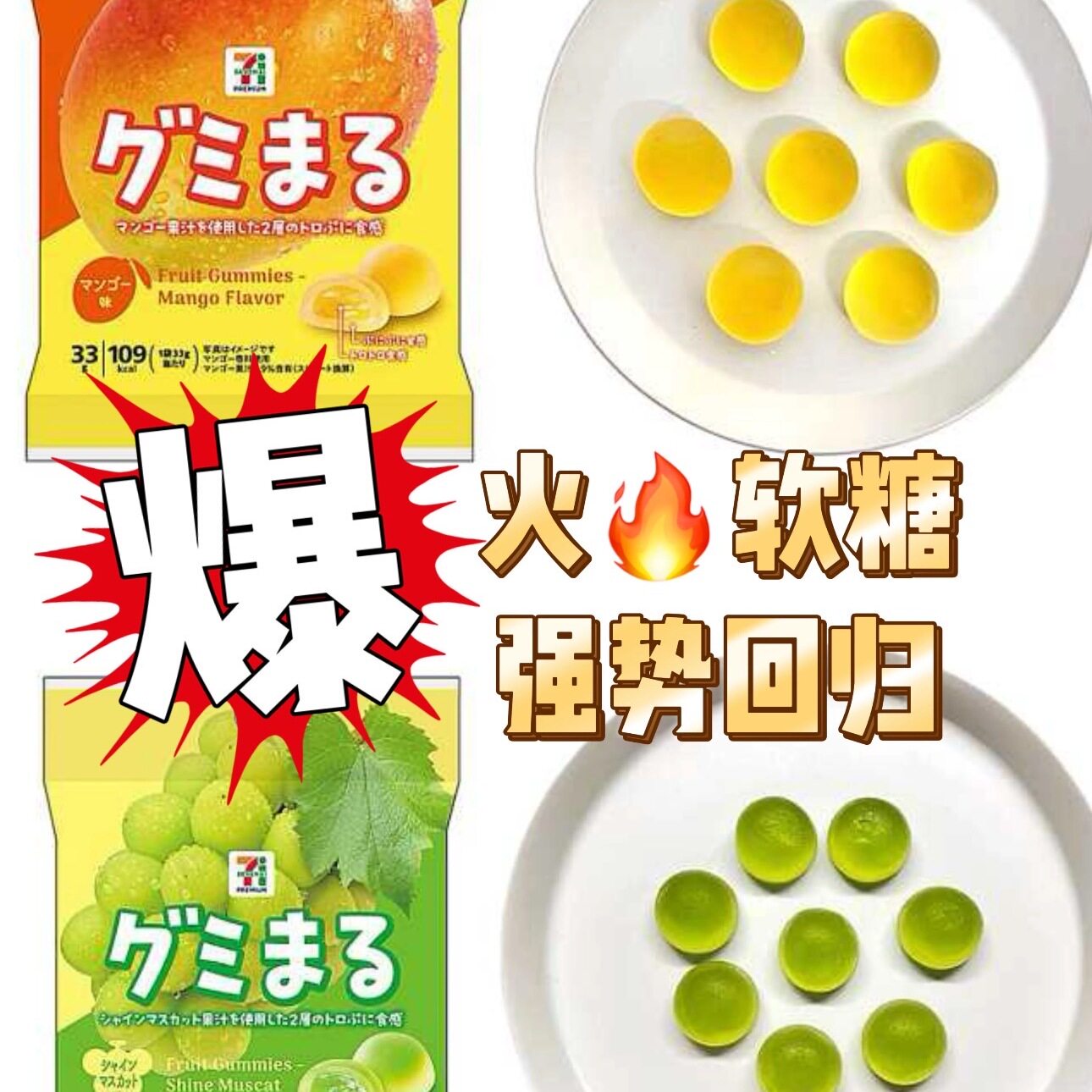现货日本本土711便利店限定青提葡萄软糖果酱夹心芒果软糖夹心糖
