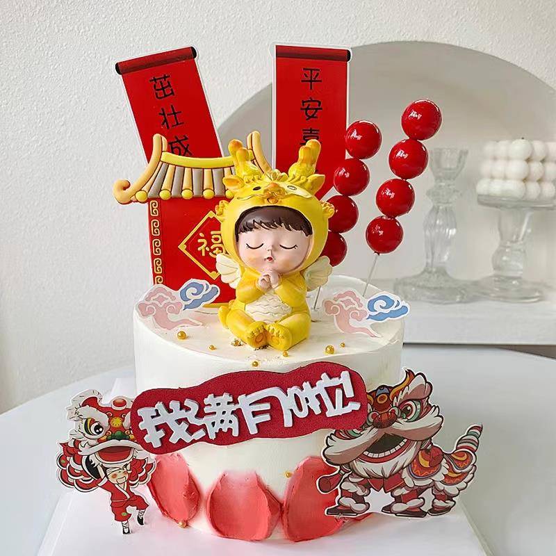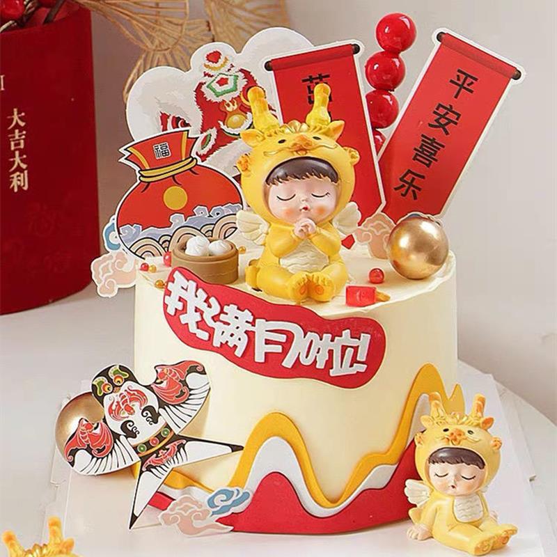 龙宝宝生日蛋糕装饰摆件网红创意生肖龙宝宝周岁百天满月烘焙插件