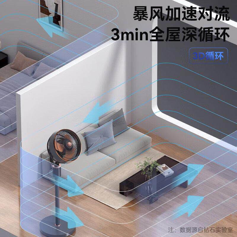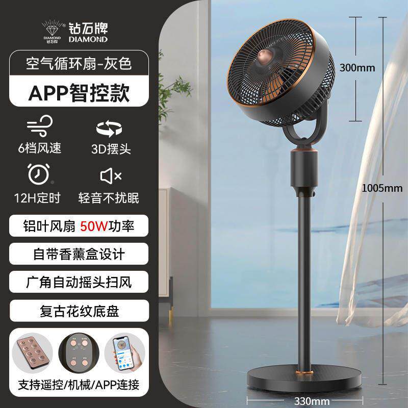 钻石牌智语用音空气循环扇家轻能音变频落6663地立式扇涡轮对流电