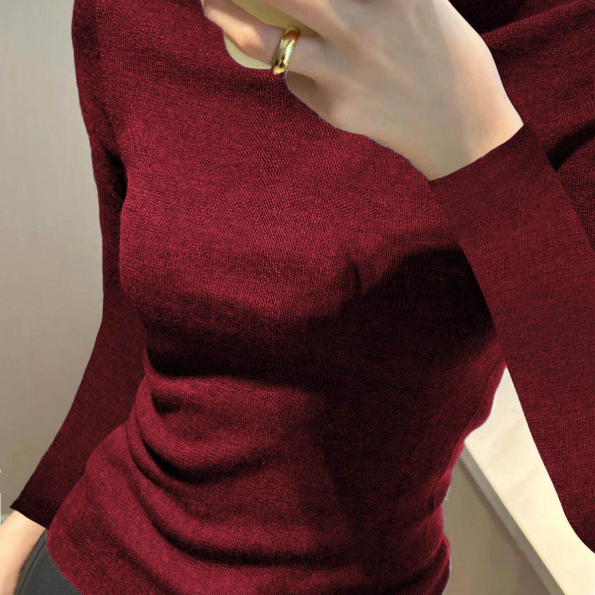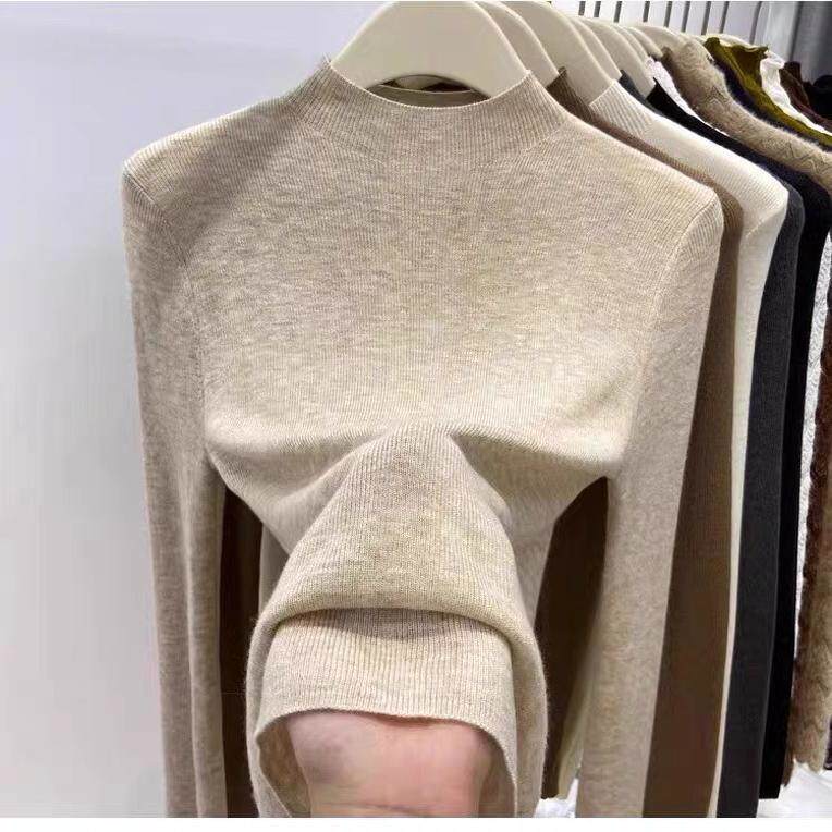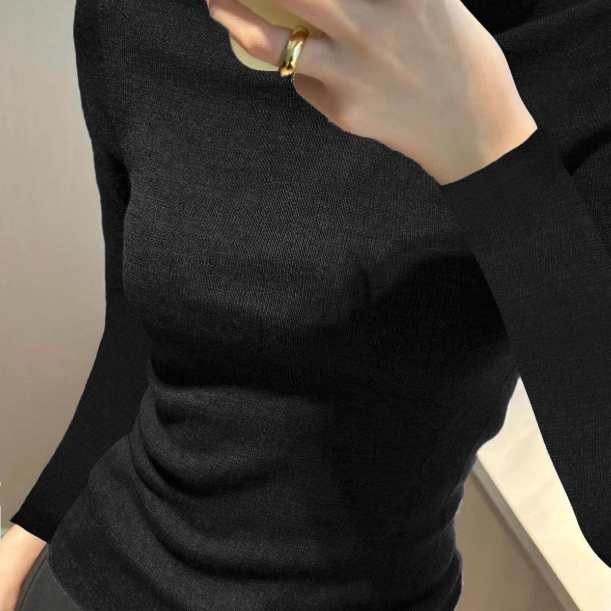 2025秋冬新款软糯针织衫紧身内搭毛衣半高领高级感深灰色打底衫女