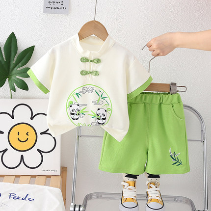 男童夏装中国风短袖套装2025新款洋气宝宝夏季唐装两件套婴儿衣服
