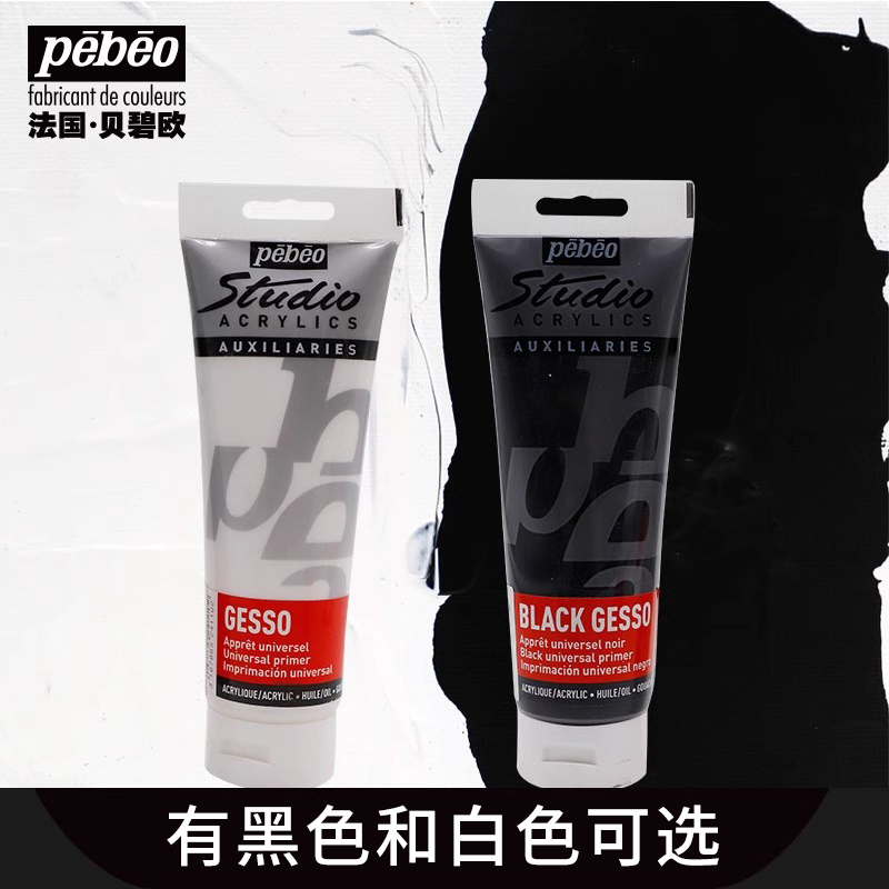 法国贝碧欧石膏底料gesso黑白色油画媒介树脂幻彩粘合剂透明白乳胶丙烯画布亚光涂层绘画材料打底用综合材料