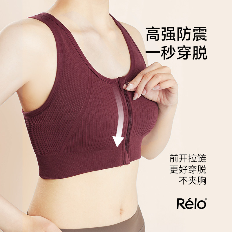 relo运动内衣女防震瑜伽背心一体式跑步训练健身文胸bra前拉链夏