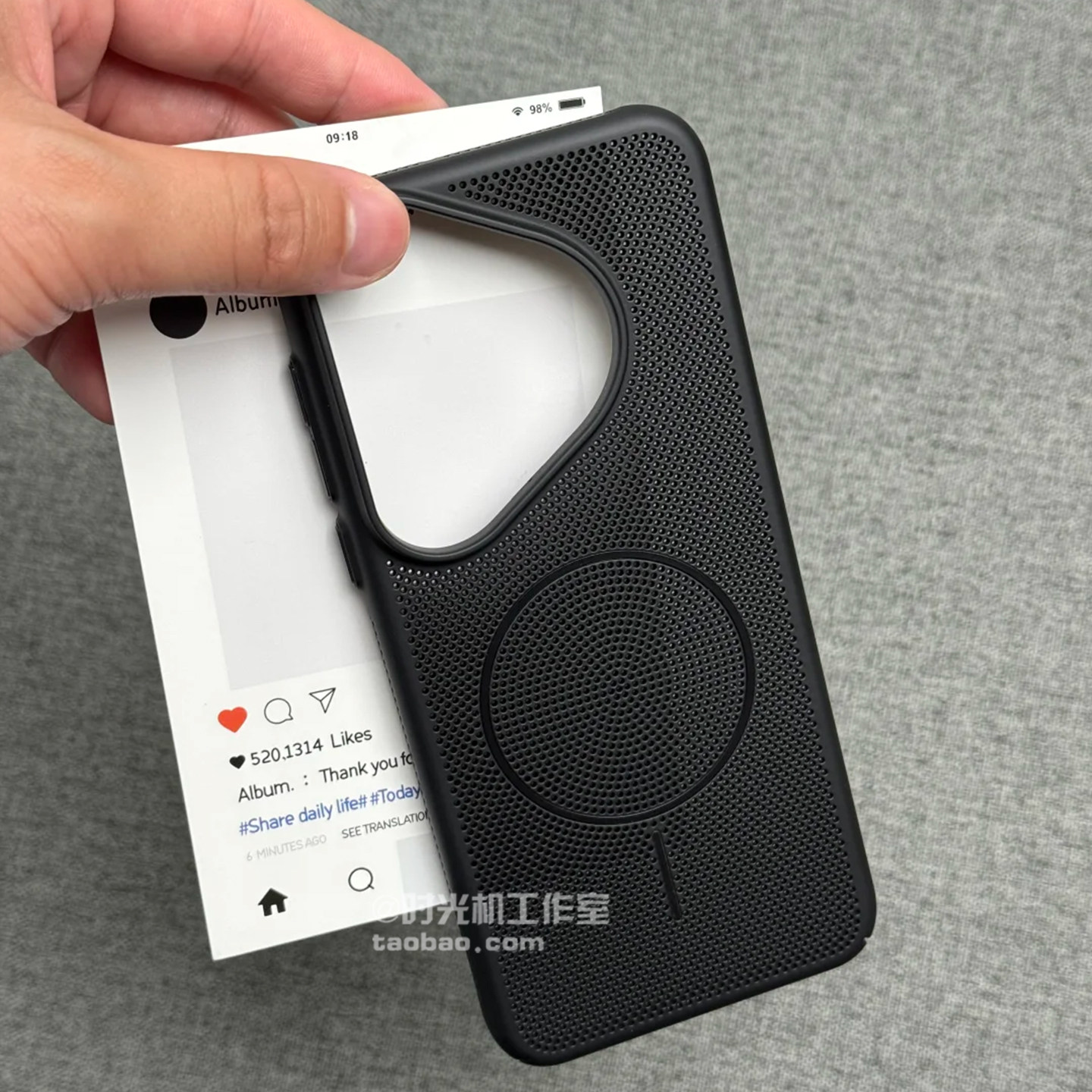 超薄镂空网洞散热磁吸壳适用华为Pura80手机壳P80Ultra透气PC硬Mate70Pro+纯黑色mate60电镀按键高级感男女套
