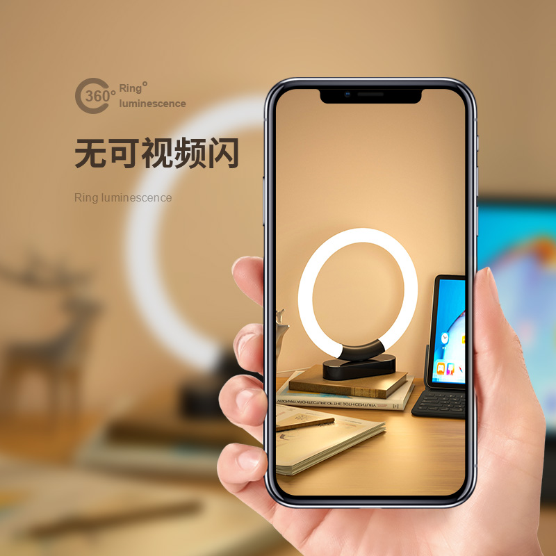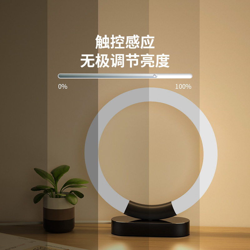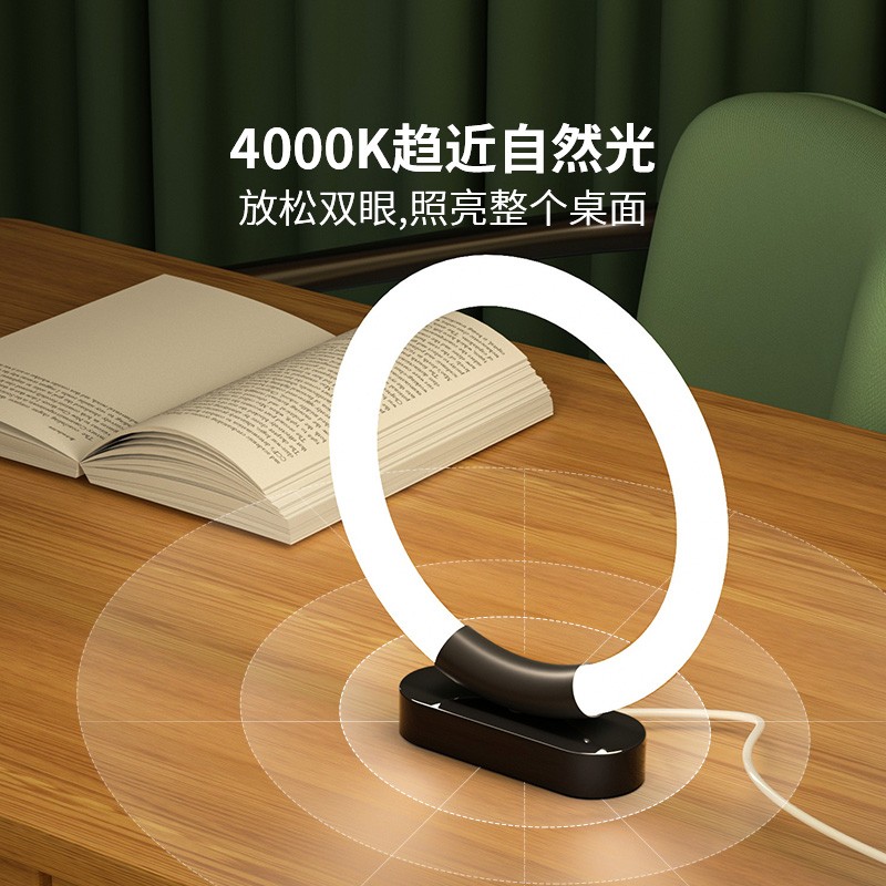 led触摸台灯书桌插电式创意y环形学生学习灯可调光护眼阅读灯家用