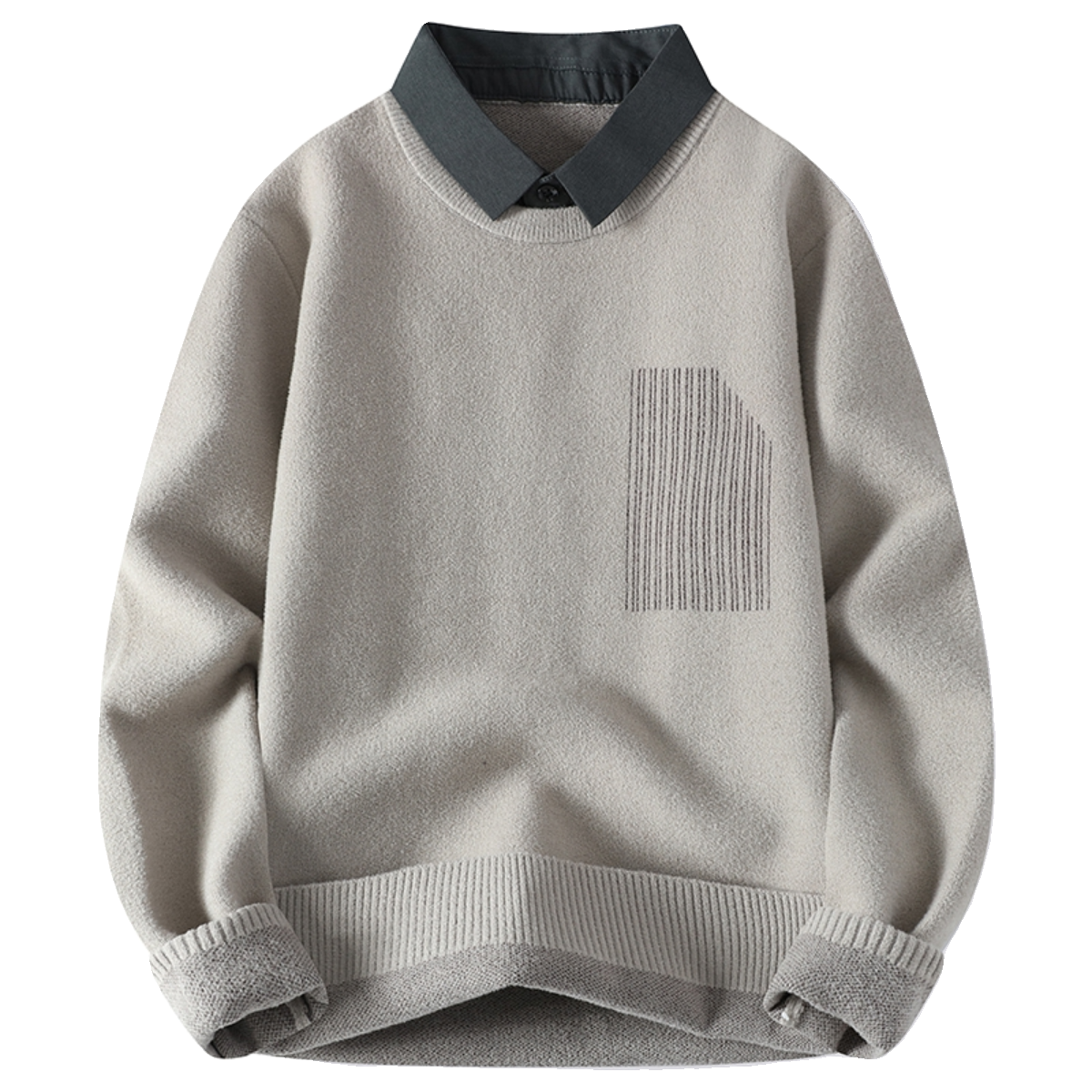 啄木鸟冬季男士毛衣加绒加厚衬衫领假两件针织衫潮流保暖内搭线衣