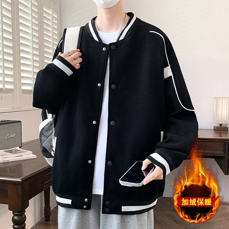 秋冬季纯棉夹克12初中学生帅气棒球服外套加绒厚15岁青少年大童男