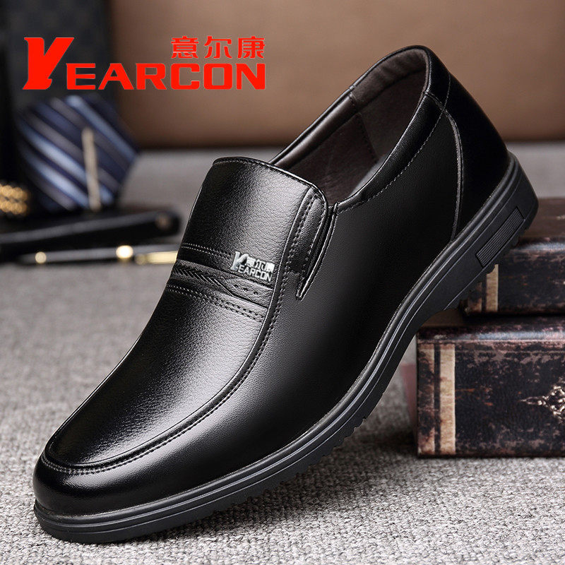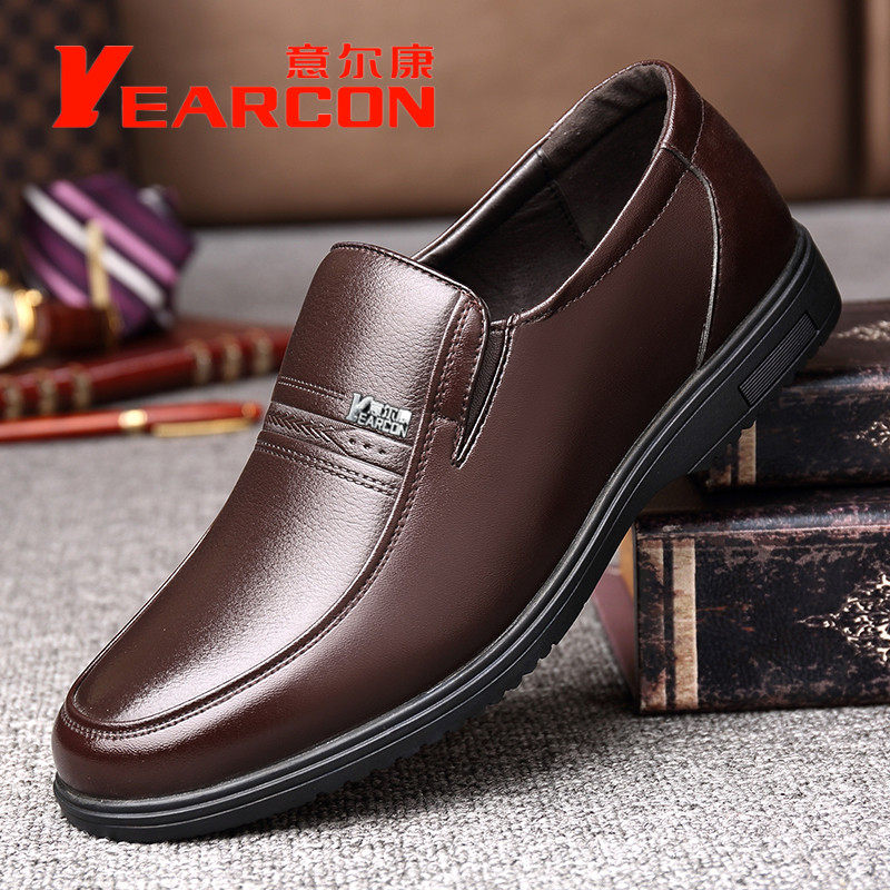 意尔康皮鞋男士真皮商务休闲鞋头层牛皮秋冬季加绒中老年爸爸鞋子