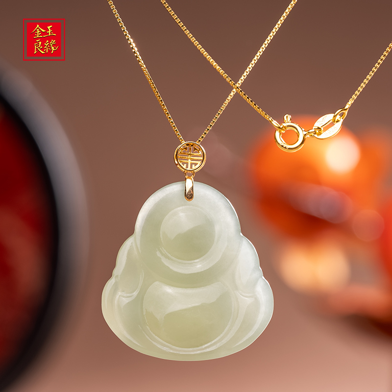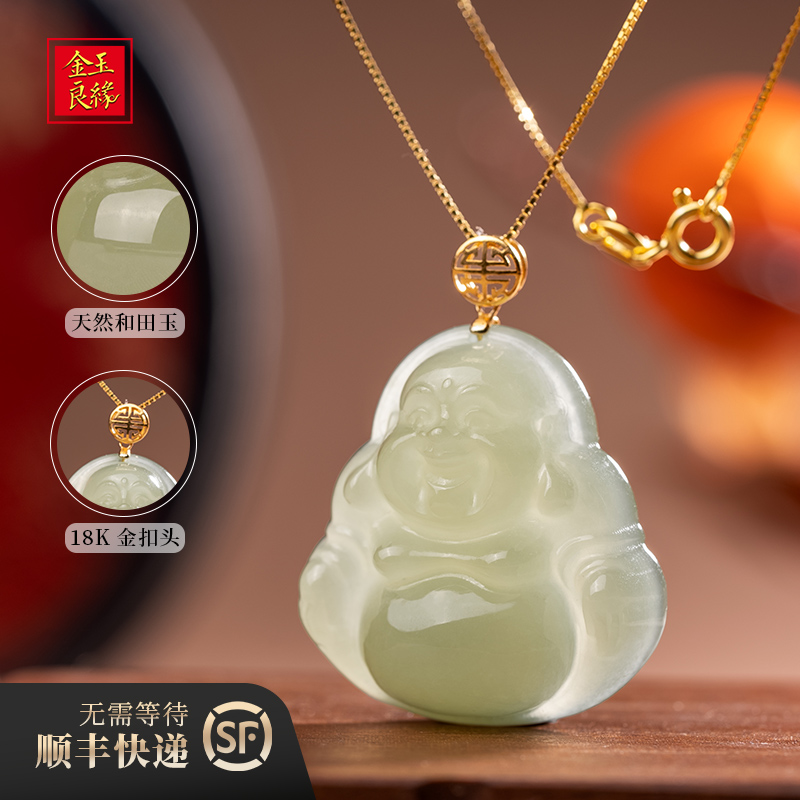 金玉良缘【如愿】18K金弥勒佛和田玉佛公吊坠佛牌玉坠项链