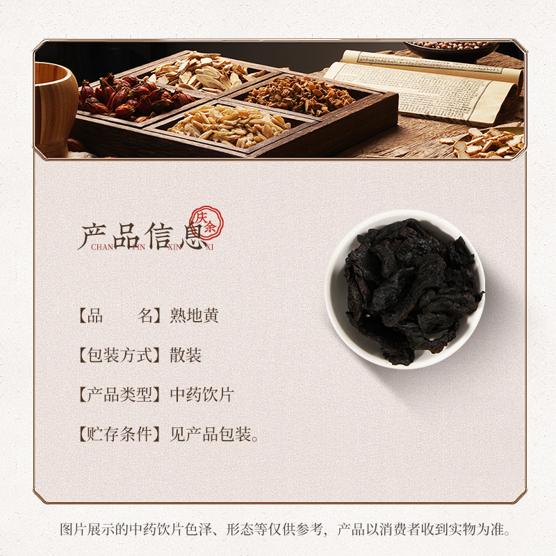 胡庆余堂熟地黄中药饮片250g煲汤干片熟地黄泡水可配四物汤中药材