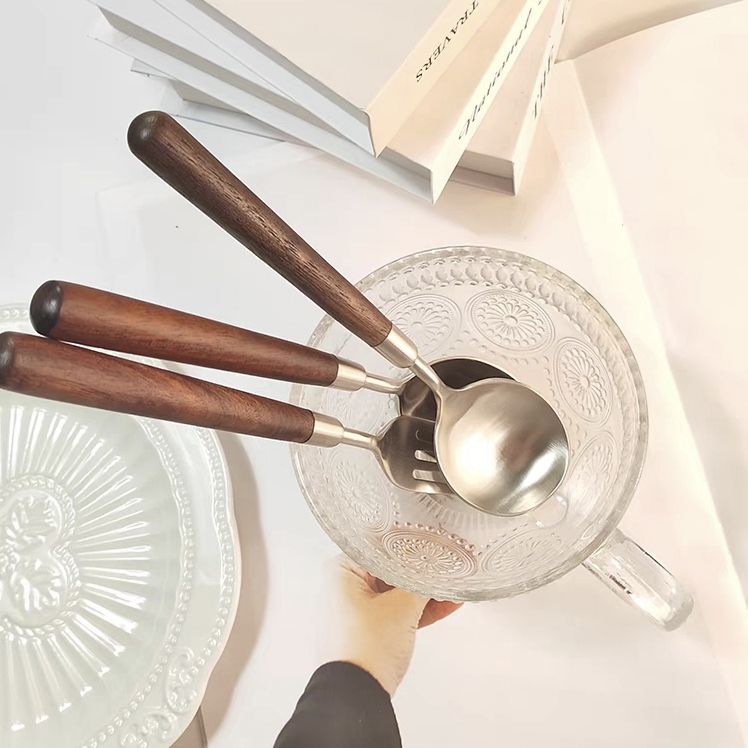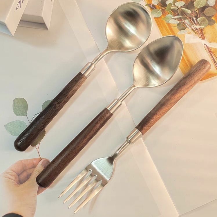 高颜值304不锈钢仿胡桃木西餐餐具家用牛排刀勺又套装四件套餐厅