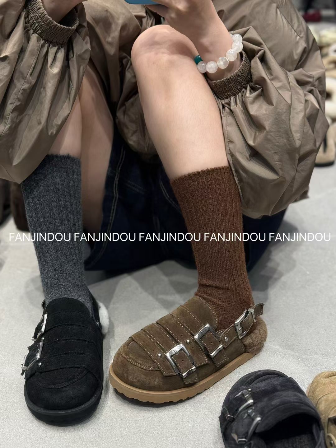 欧货25冬季新款真皮厚底勃肯鞋女外穿皮毛一体包头拖鞋羊毛