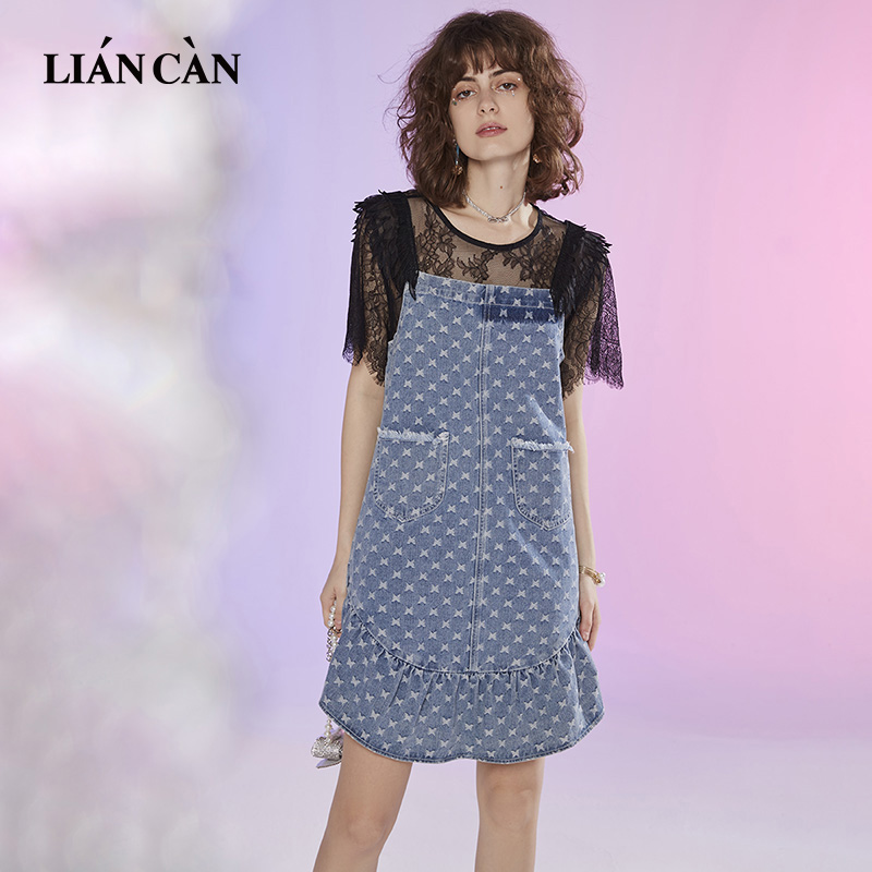 莲灿2025春夏新商场同款网纱绣花牛仔吊带连衣裙背带裙71AN322001