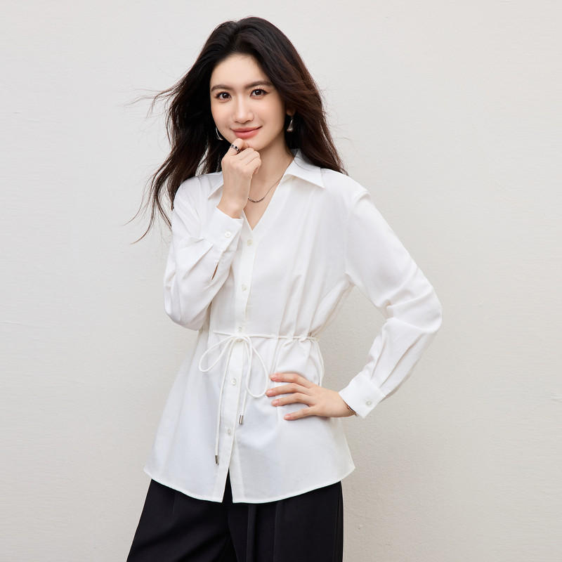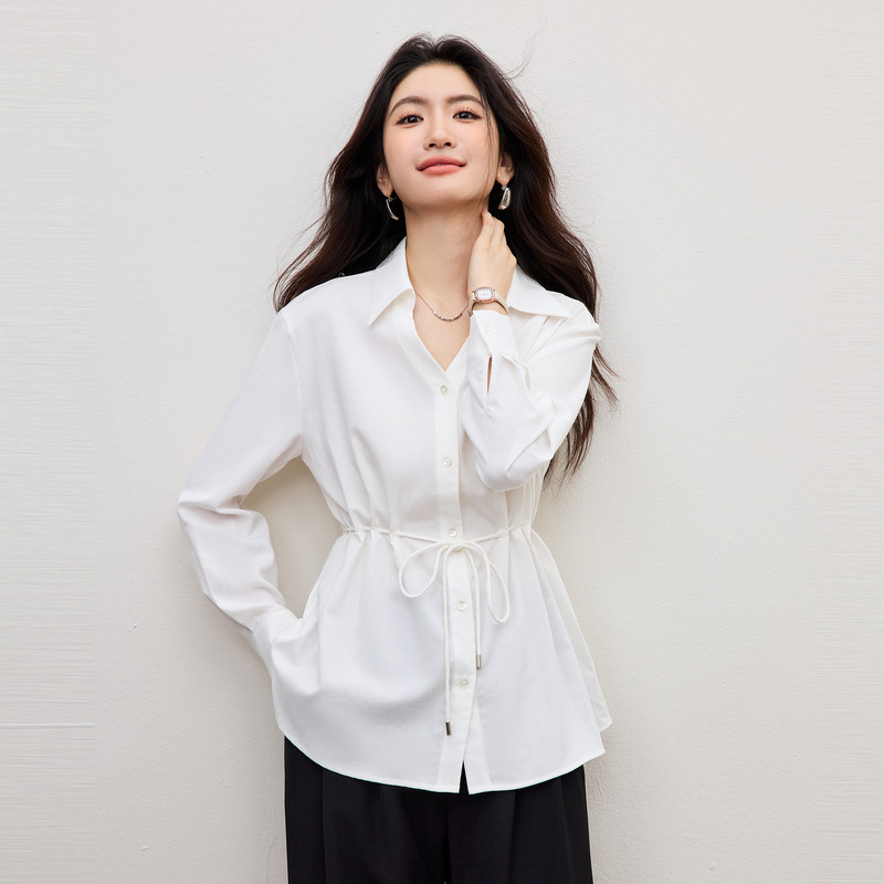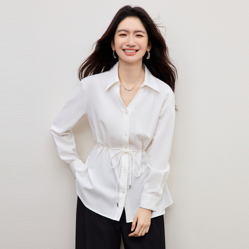 法式气质系带收腰白色长袖衬衫女2026秋季设计感通勤衬衣韩系上衣
