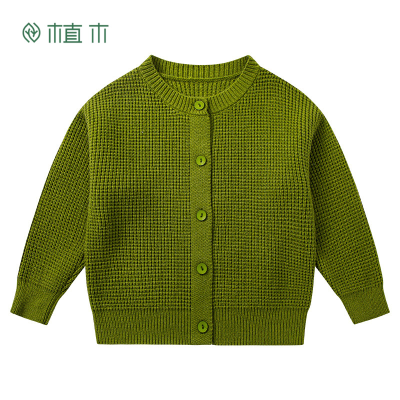 植木童装华夫格针织男童女童毛衣中大童2025春秋新款休闲儿童开衫
