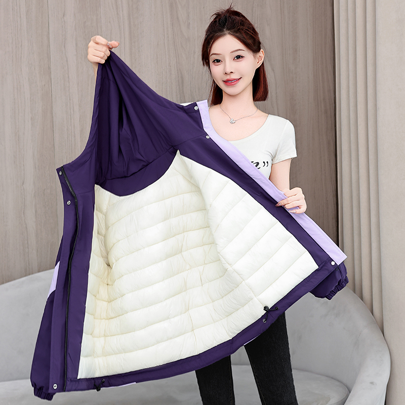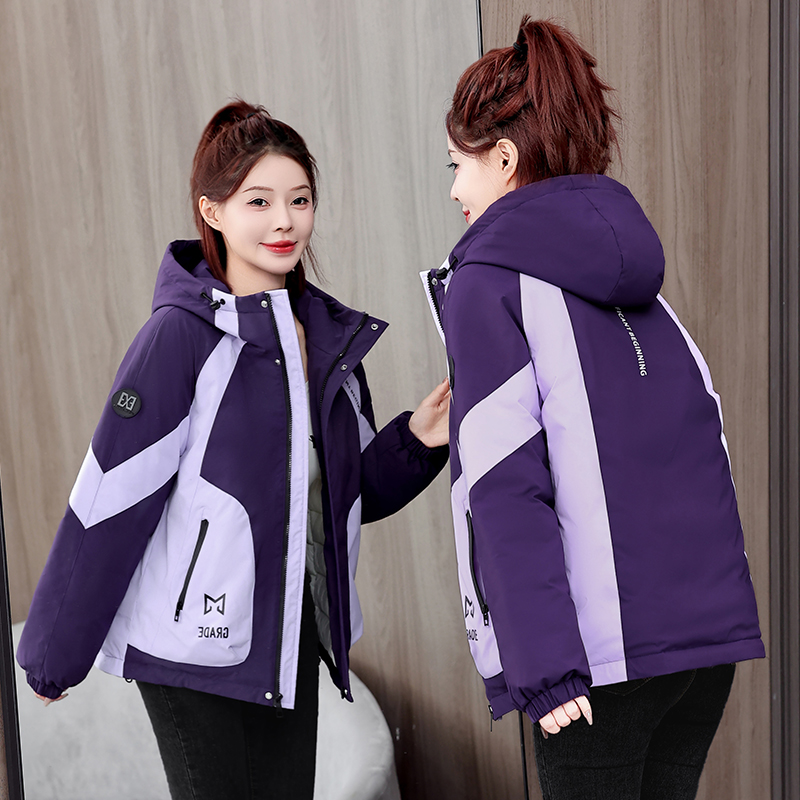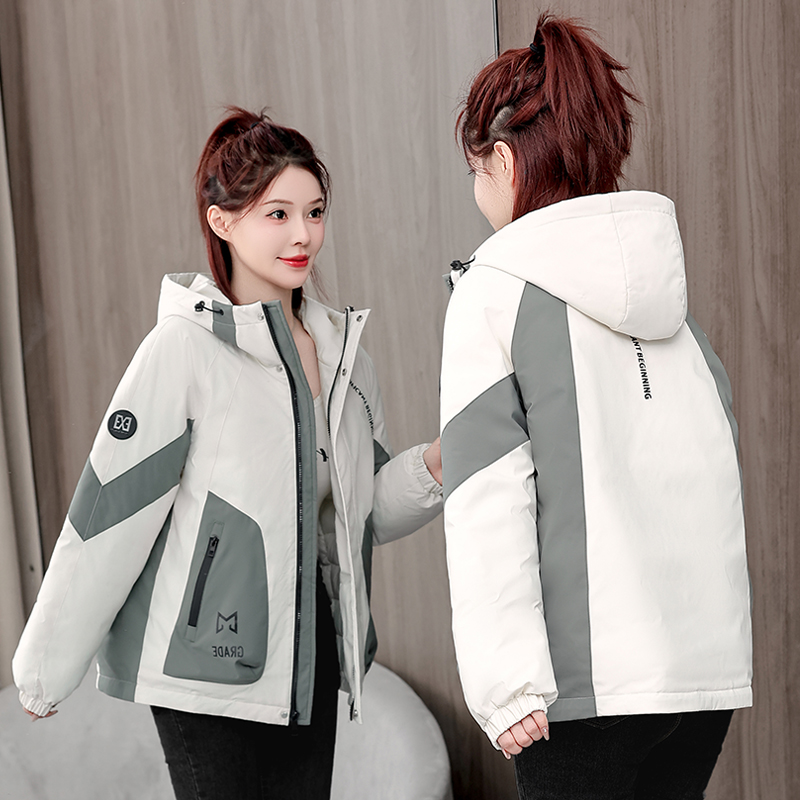 冬季新款休闲宽松冲锋衣棉衣加厚短款拼接撞色工装棉服外套棉袄女