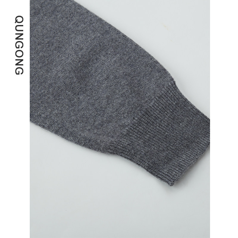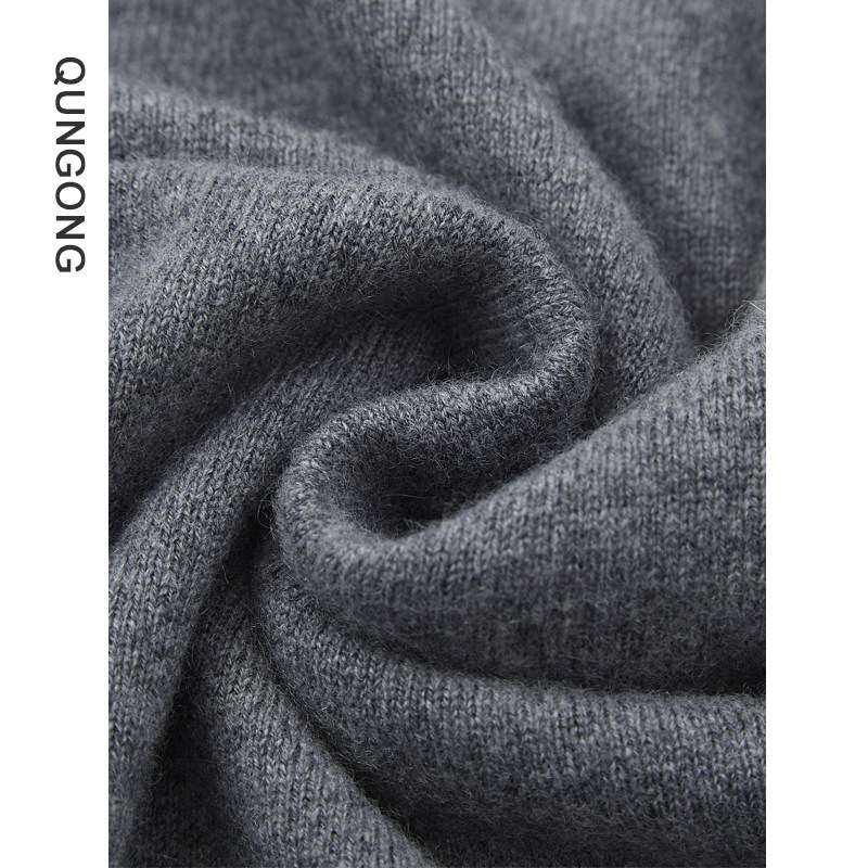 群工2025秋冬新款套头V领纯羊绒衫男士纯色内搭保暖长袖毛衣