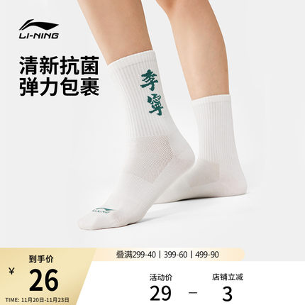 李宁中筒中长袜男女士官方正品柔软舒适包裹多色百搭长袜运动袜子