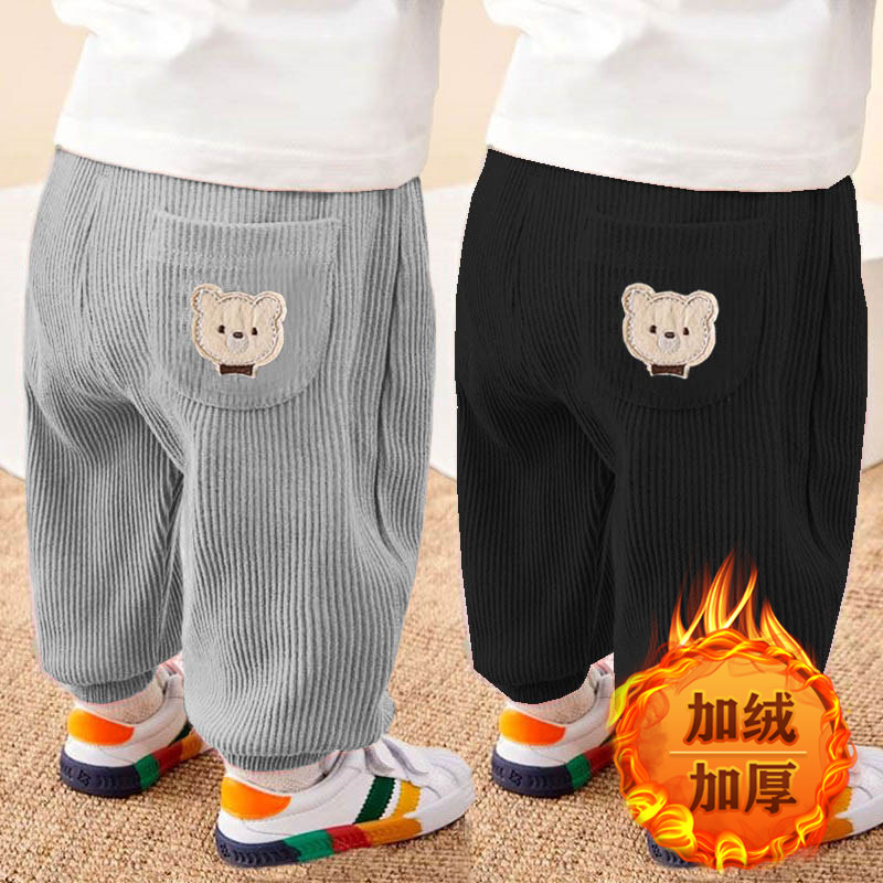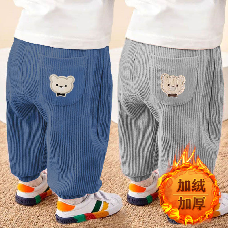 2025新款冬季儿童加绒加厚裤子灯芯绒男童女童休闲运动一体绒外穿