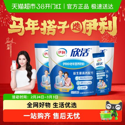 下拉详情领优惠伊利欣活中老年营养牛奶粉400g*3袋益生菌冲饮早餐