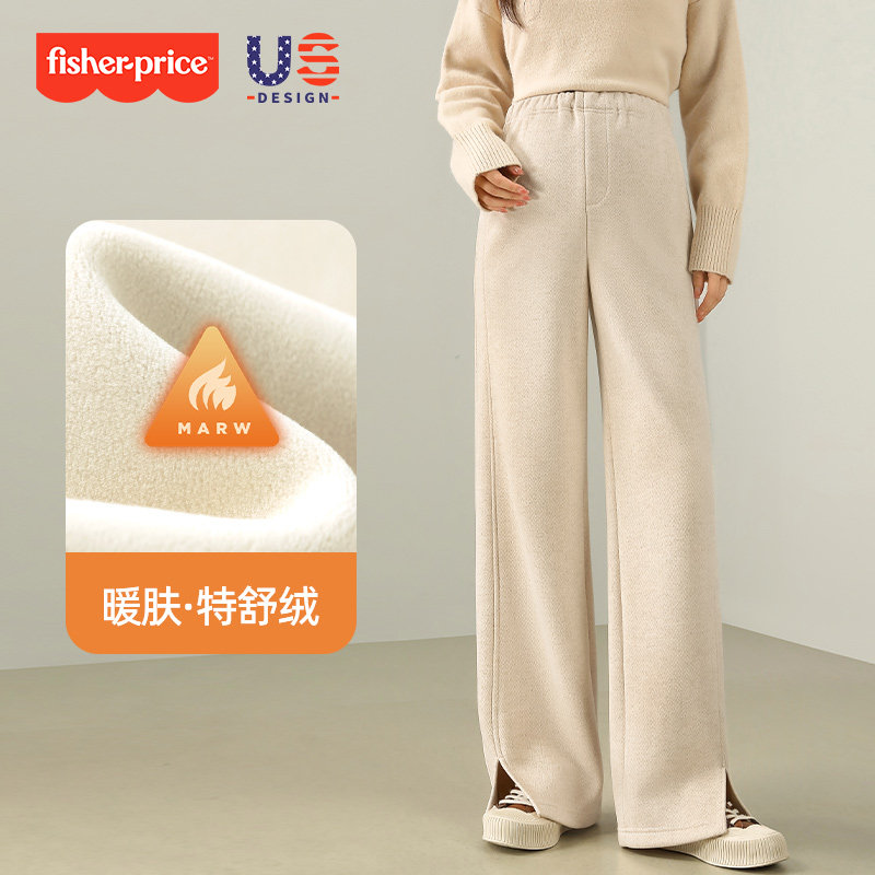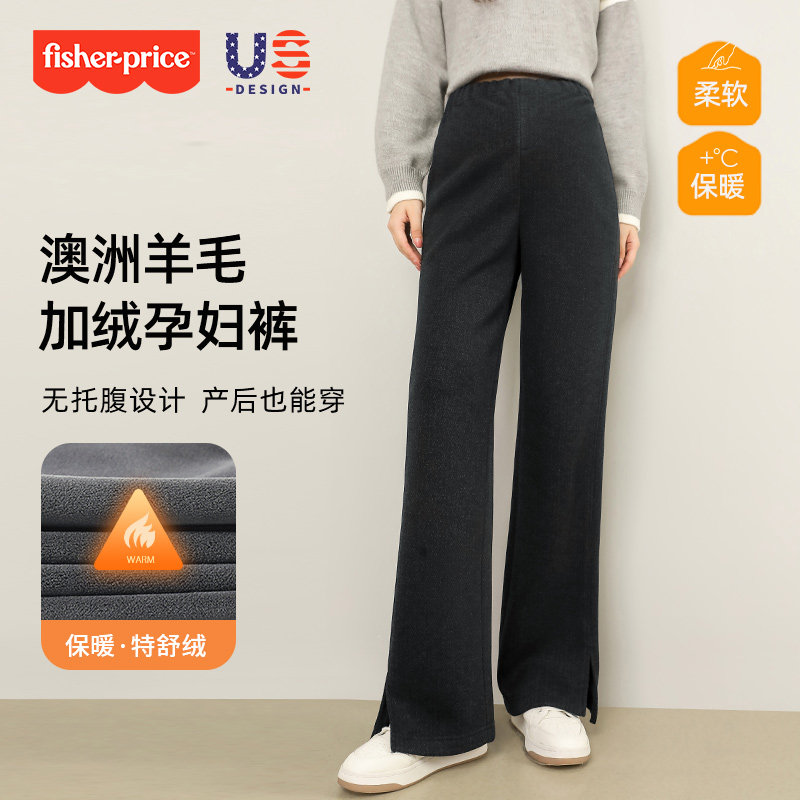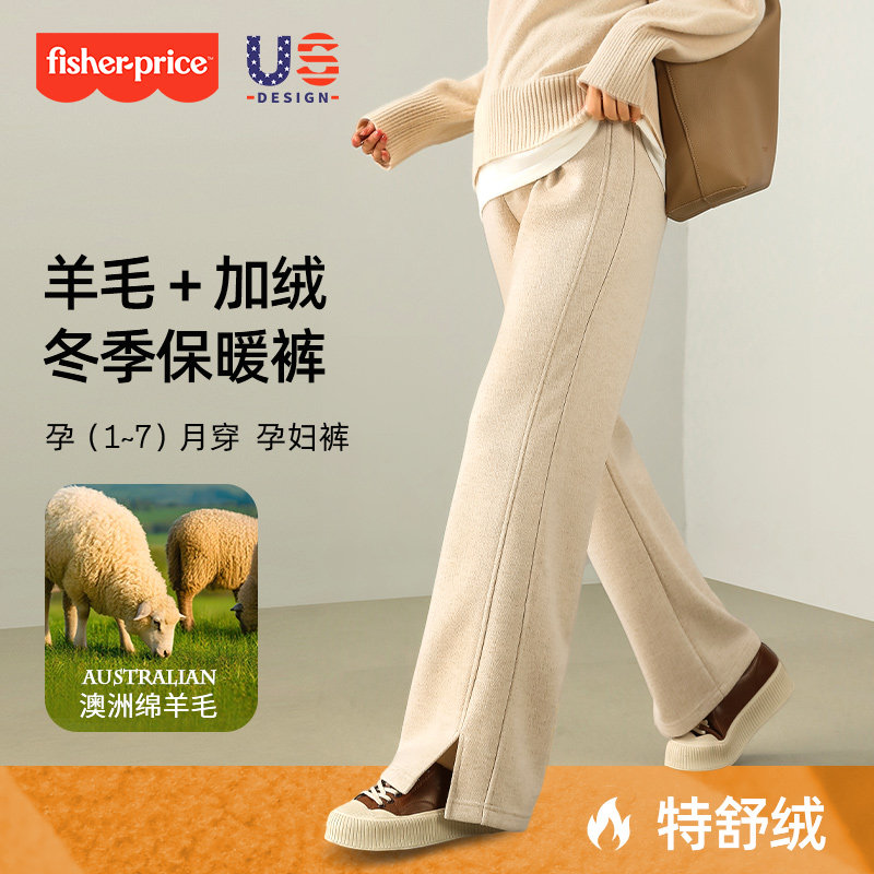 费雪羊毛孕妇裤秋冬2025新款外穿小个子无托腹冬季加绒加厚阔腿裤