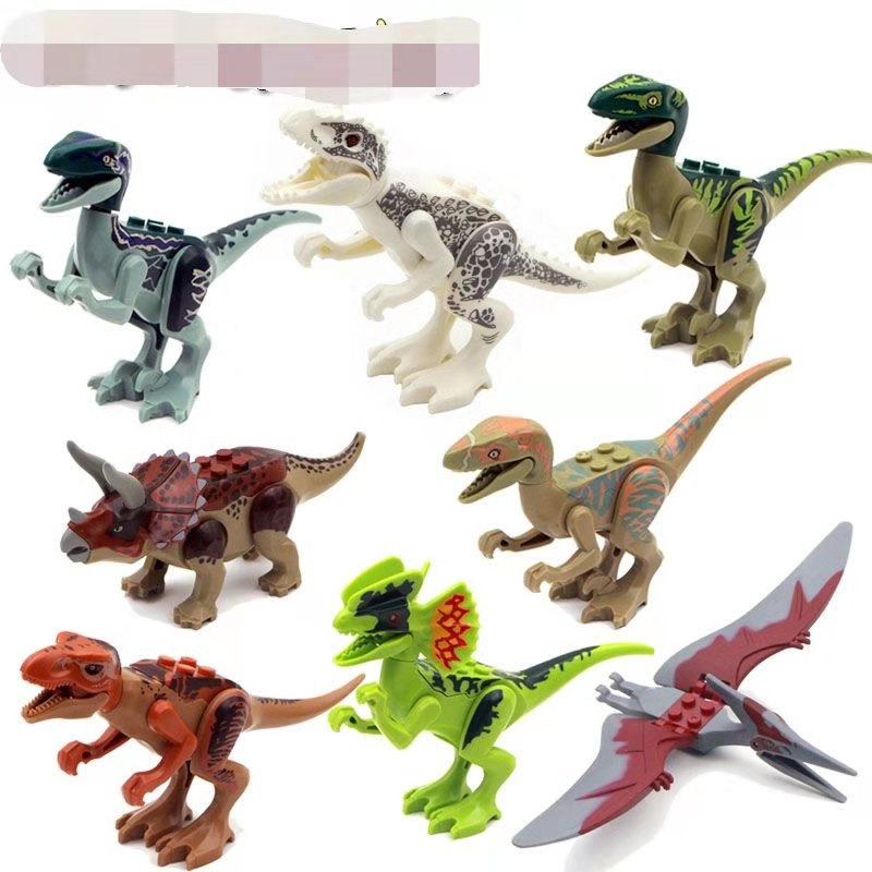 中国积木恐龙系列白暴龙三角龙双脊龙迅猛龙重爪龙霸王龙拼插积木