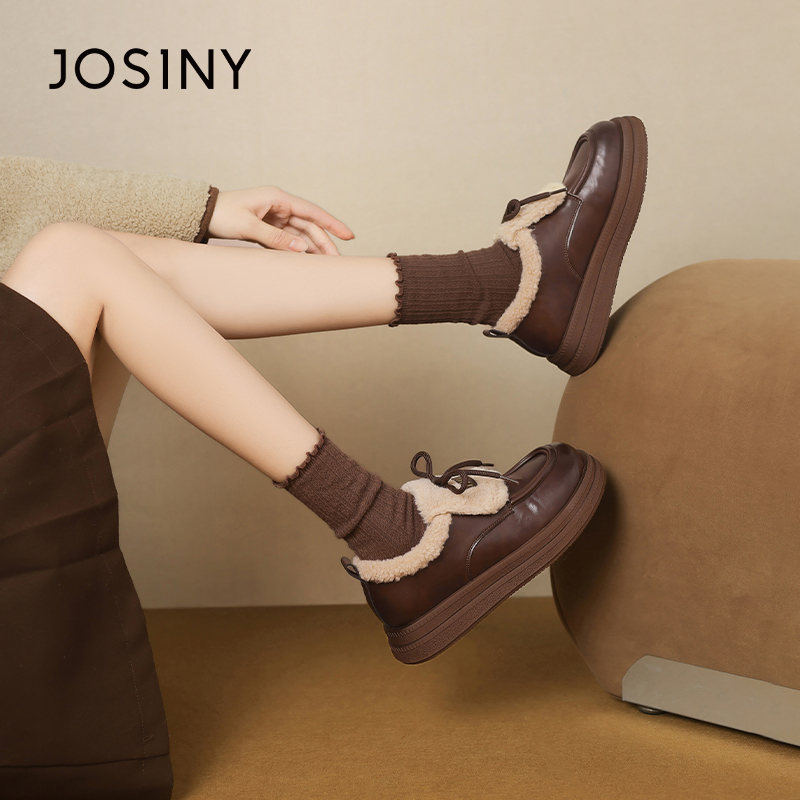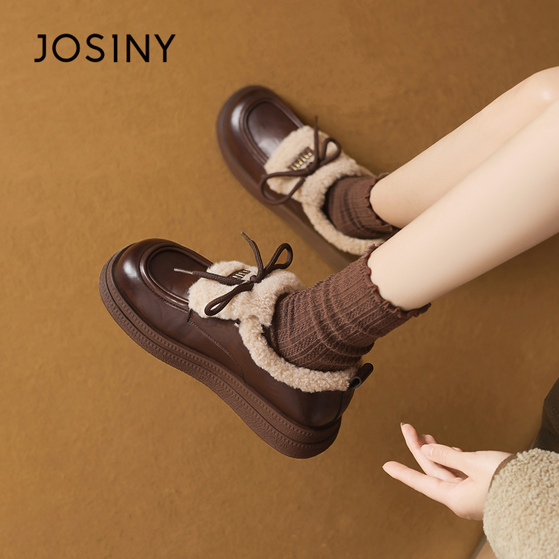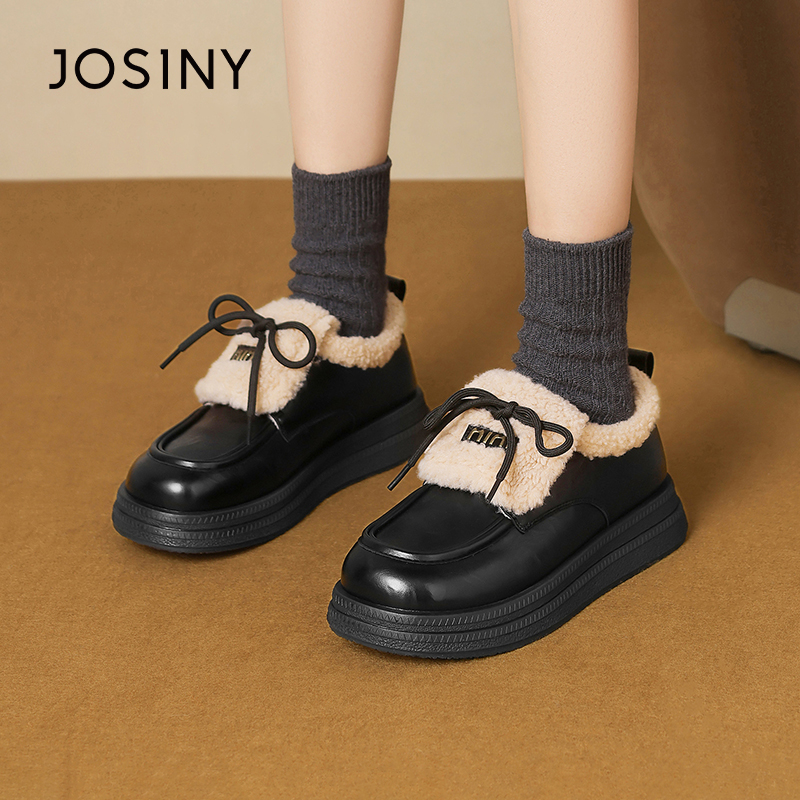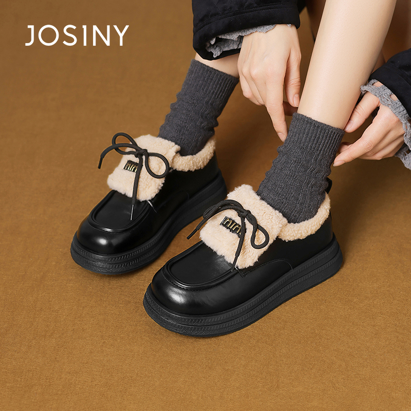 卓诗尼2025秋冬季新款厚底女乐福鞋加绒保暖棉鞋雪地靴圆头小皮鞋