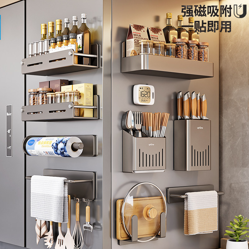 厨房多功能置物架磁吸抹布毛巾收纳架冰箱侧边省空间利用神器壁挂