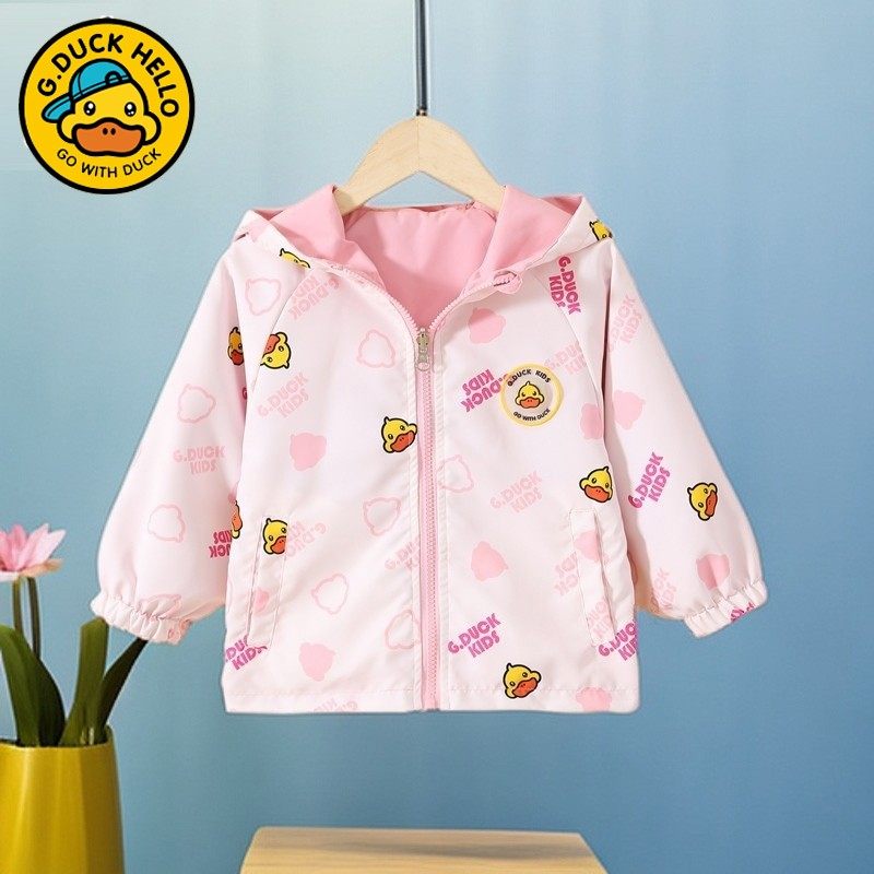 小黄鸭童装儿童秋季外套男童两面穿卡通连帽风衣女童冲锋衣户外服