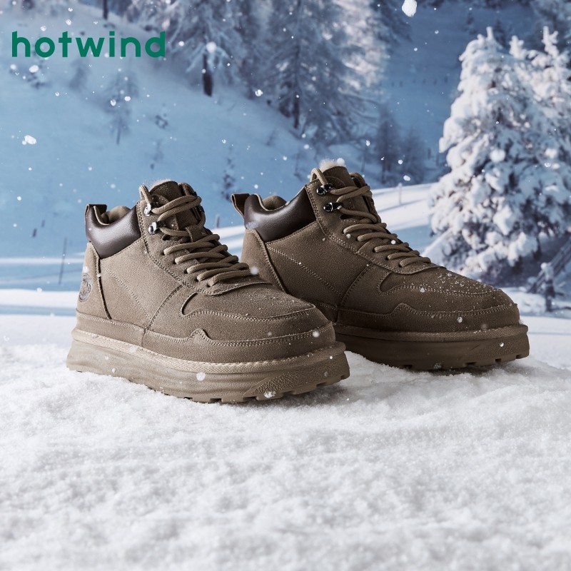 热风男鞋雪地靴冬季新款男士靴子百搭户外时尚加绒保暖靴子