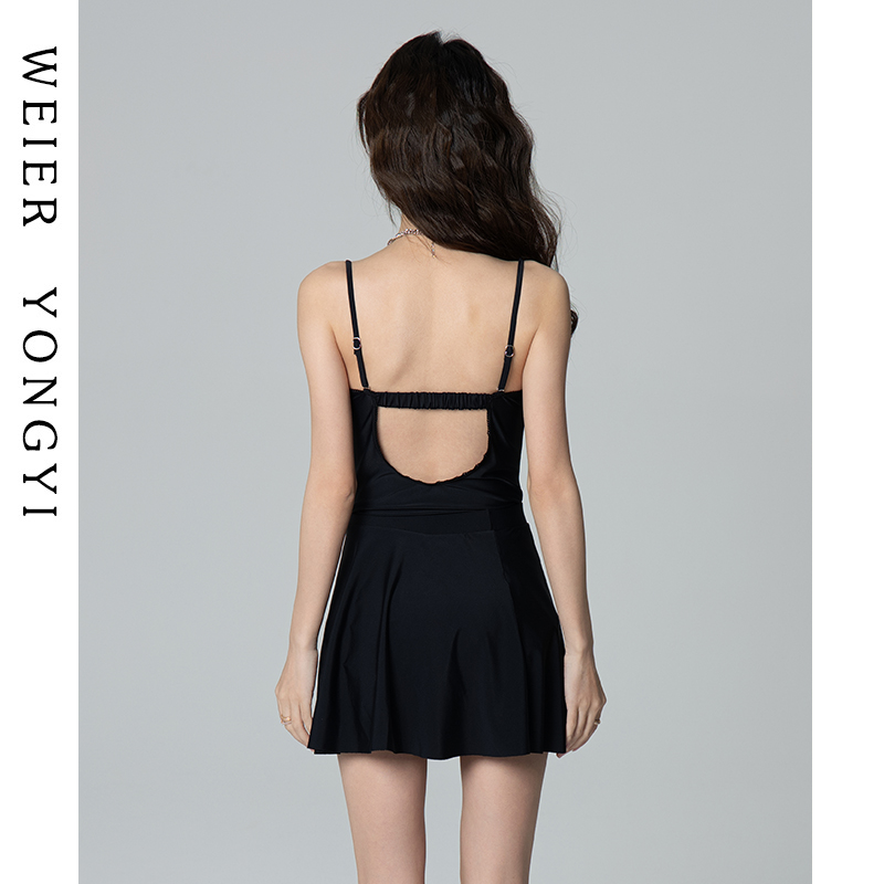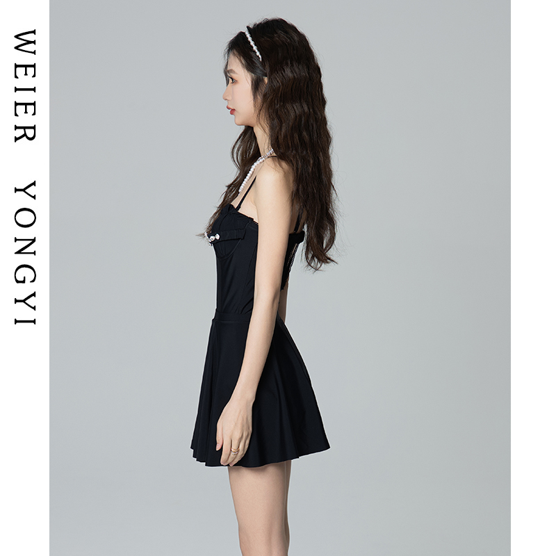 泳衣女新款高级感镶钻性感吊带保守连体裙式遮肚显瘦小胸聚拢温泉