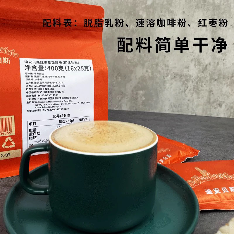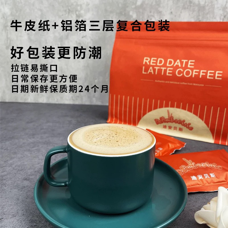 马来西亚进口迪安贝斯白咖啡红枣拿铁无蔗糖无植脂末速溶咖啡粉泡