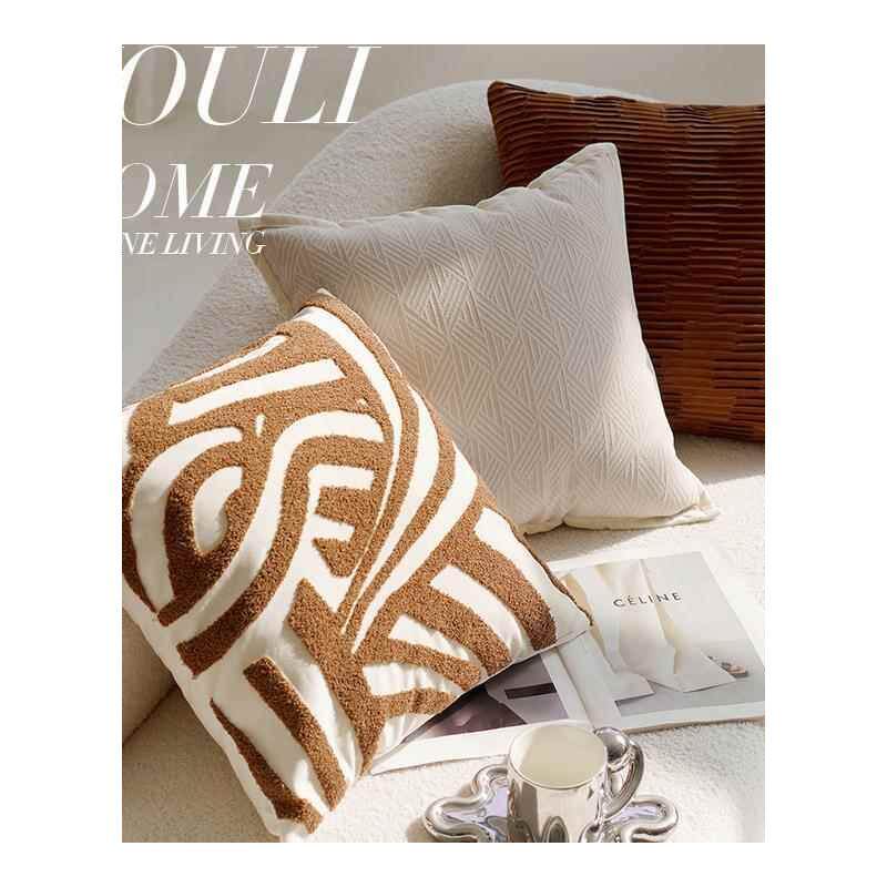 奶油色高级复古风打结抱枕套沙发床上棕色床上腰靠枕靠垫含芯飘窗
