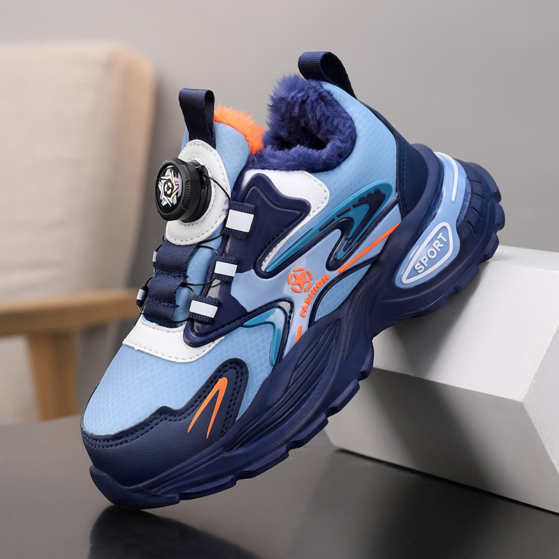 CEO ABC男童棉鞋2025冬季加绒加厚皮面儿童运动鞋防滑中大童鞋子