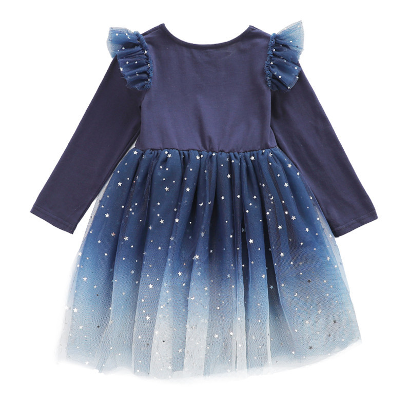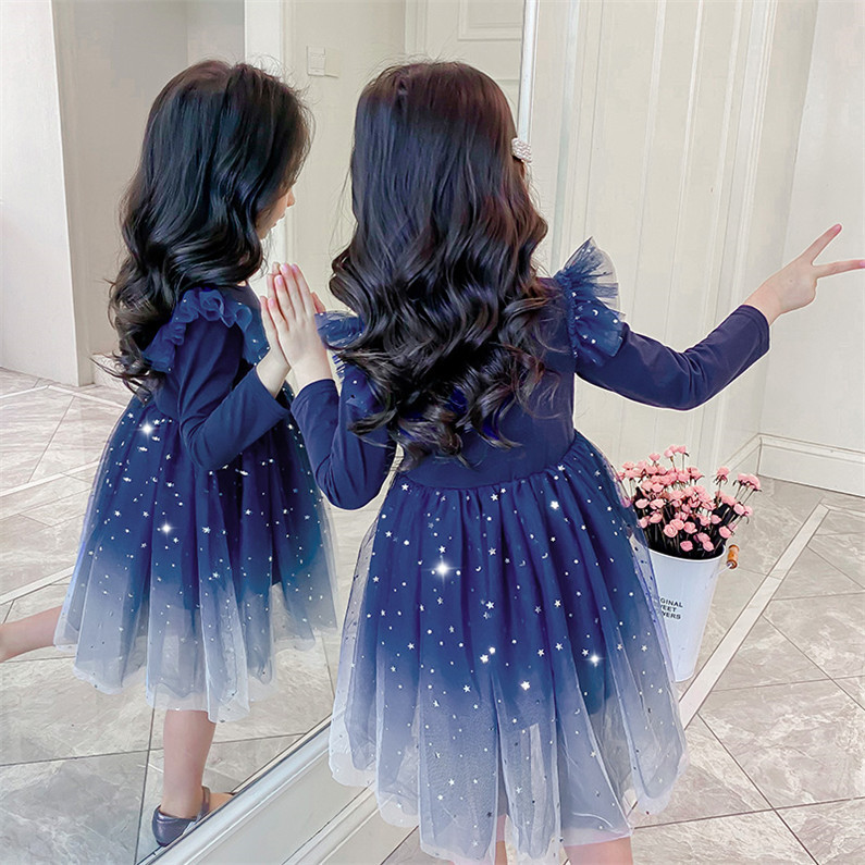 女童秋装2021星空渐变长袖连衣裙