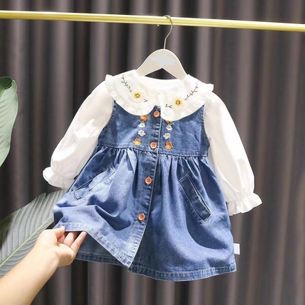 网红童装女宝宝牛仔背心裙秋季套装儿童女可爱宝宝背带裙1到3岁