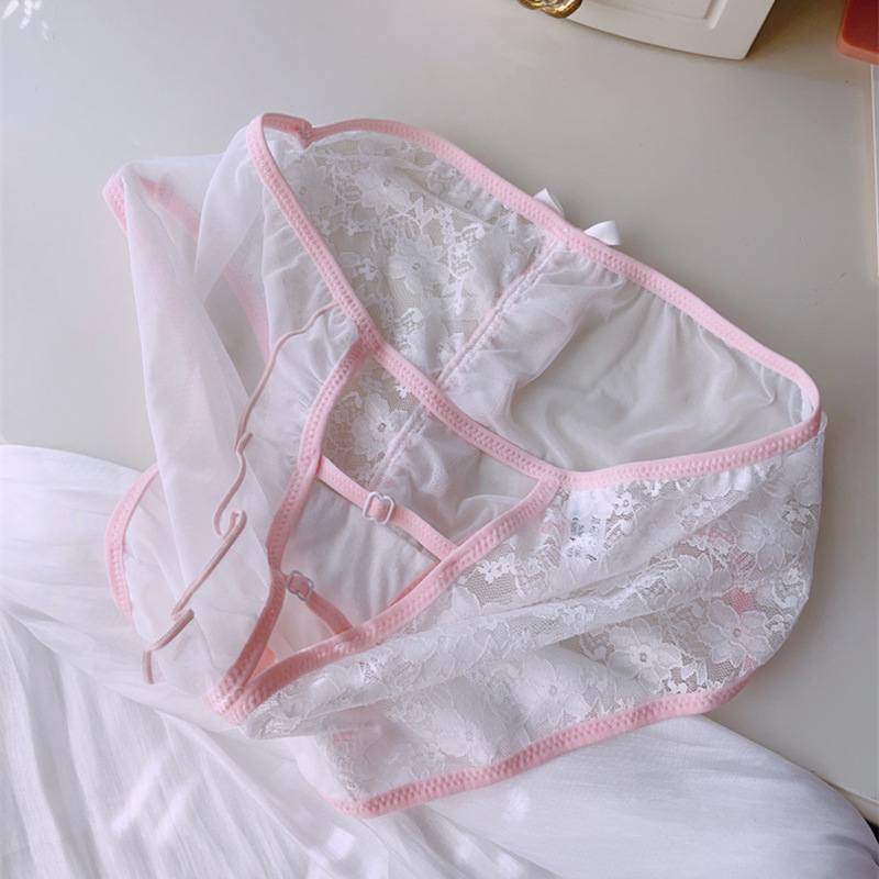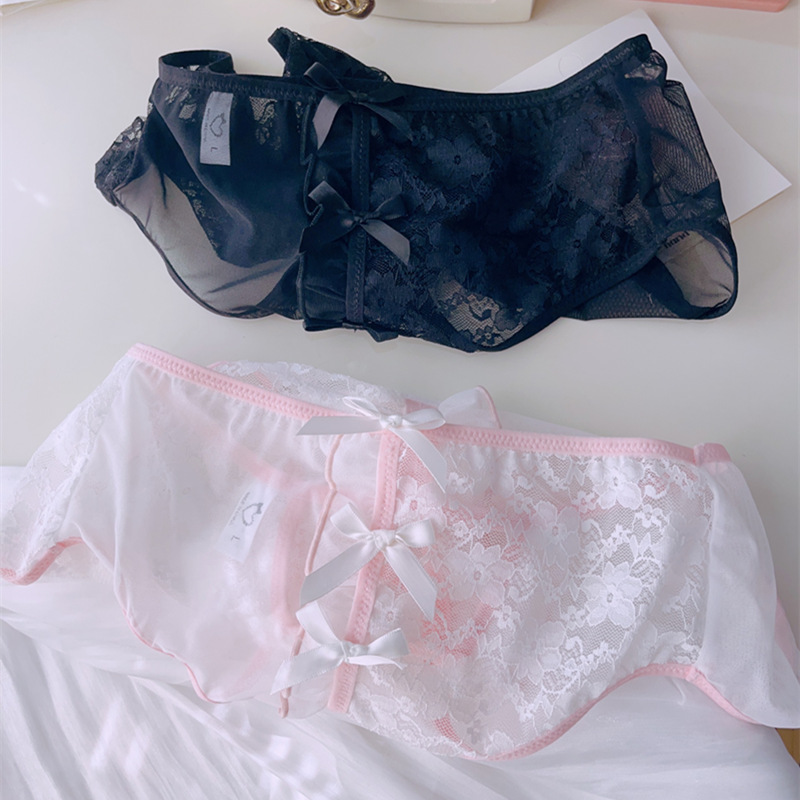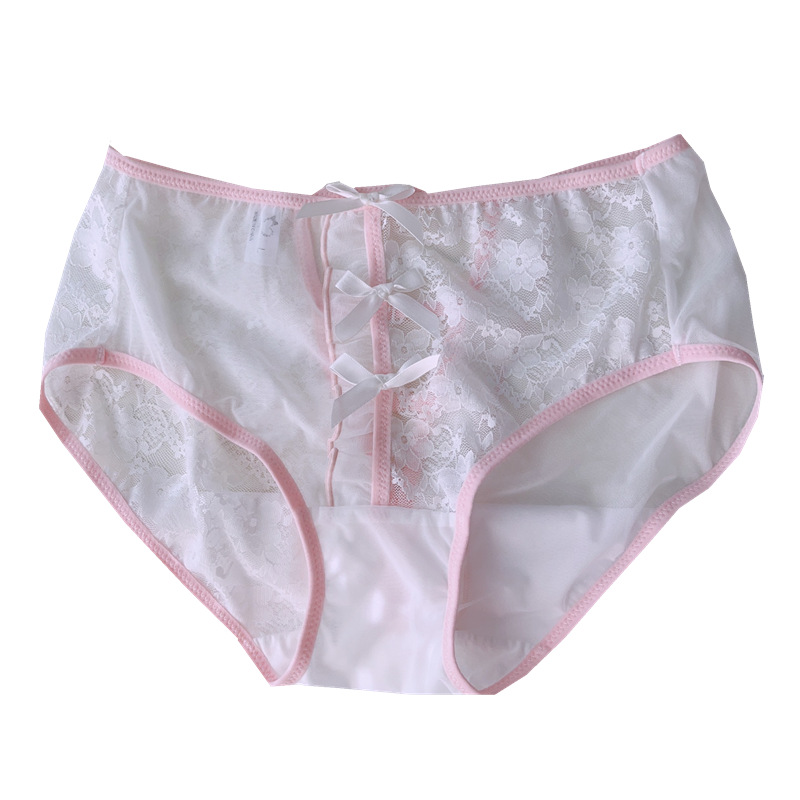 纯欲风蕾丝纱网拼接性感日系中腰大码女士内裤胖妹妹性感缕空透明