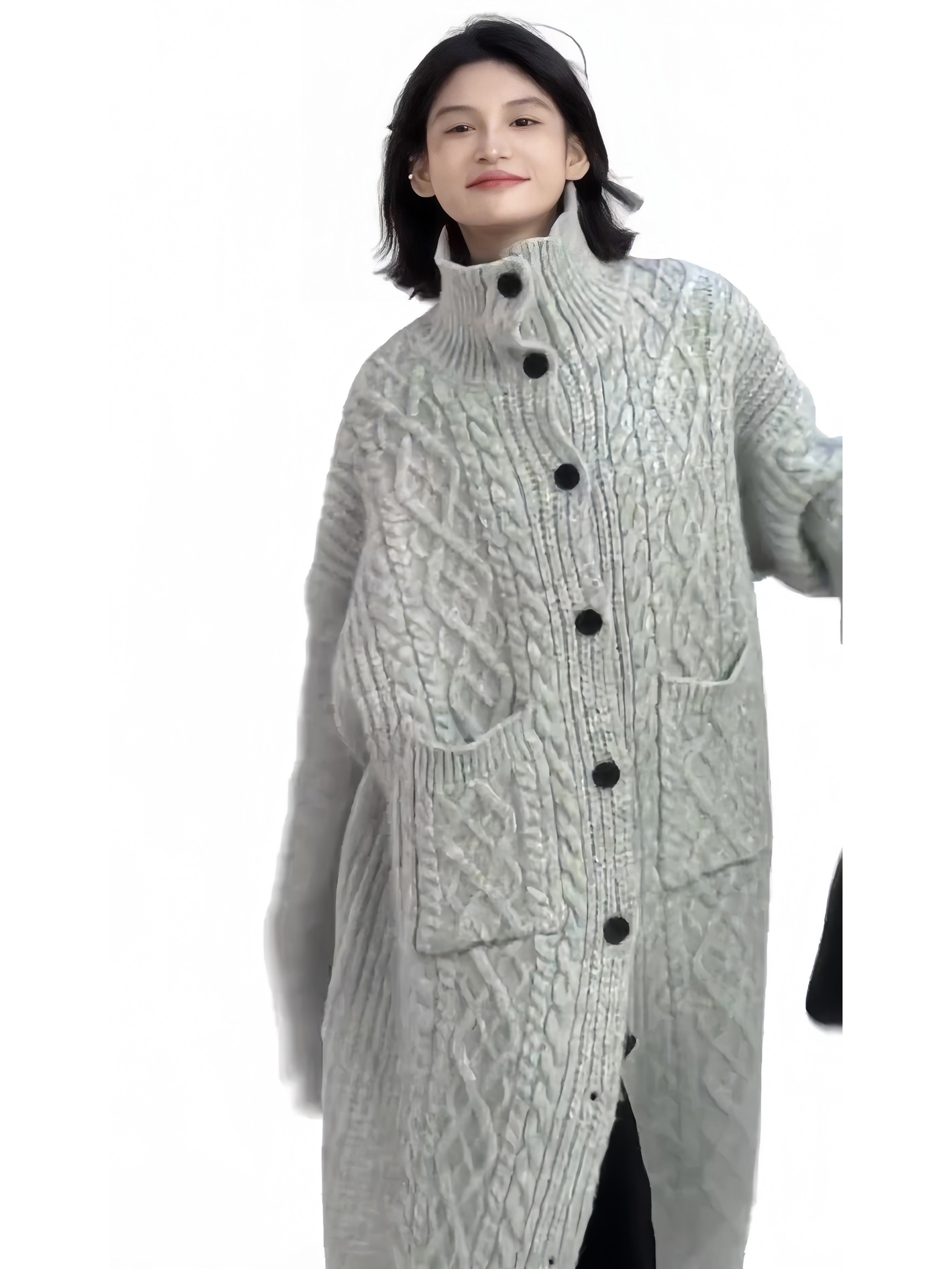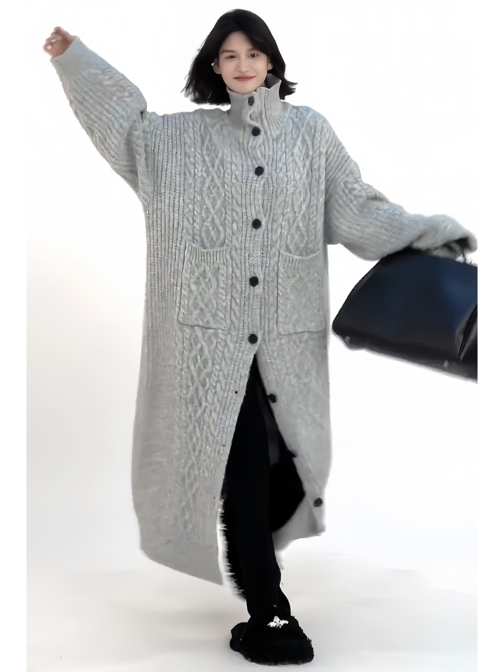 高领休闲风宽松针织长款毛衣外套