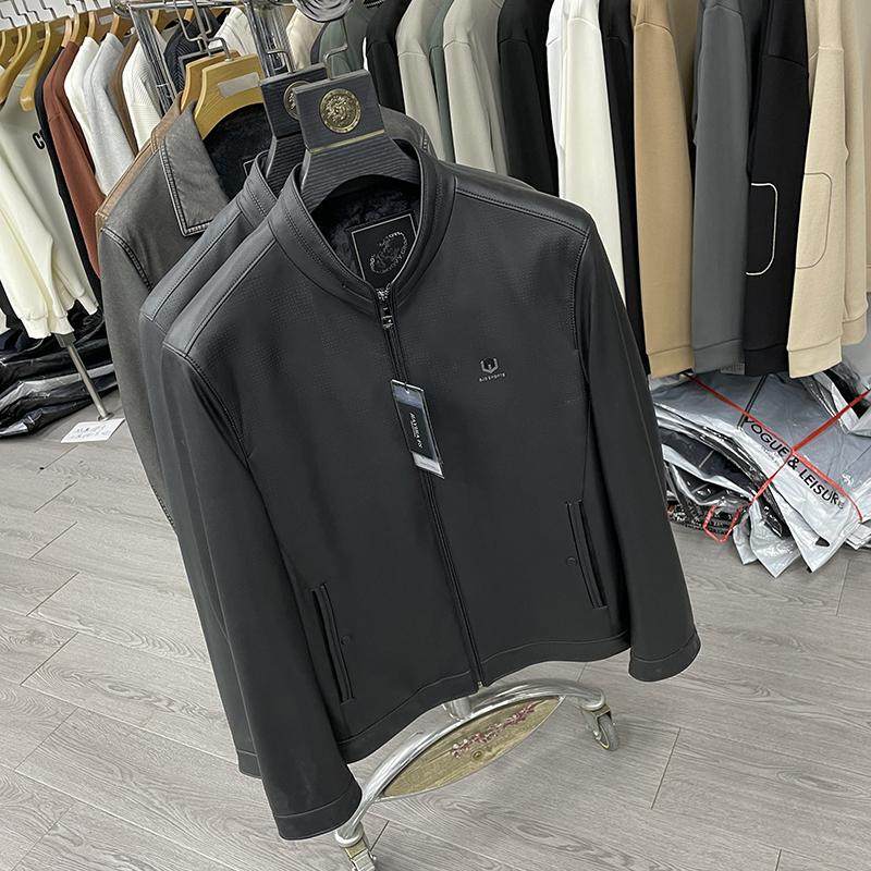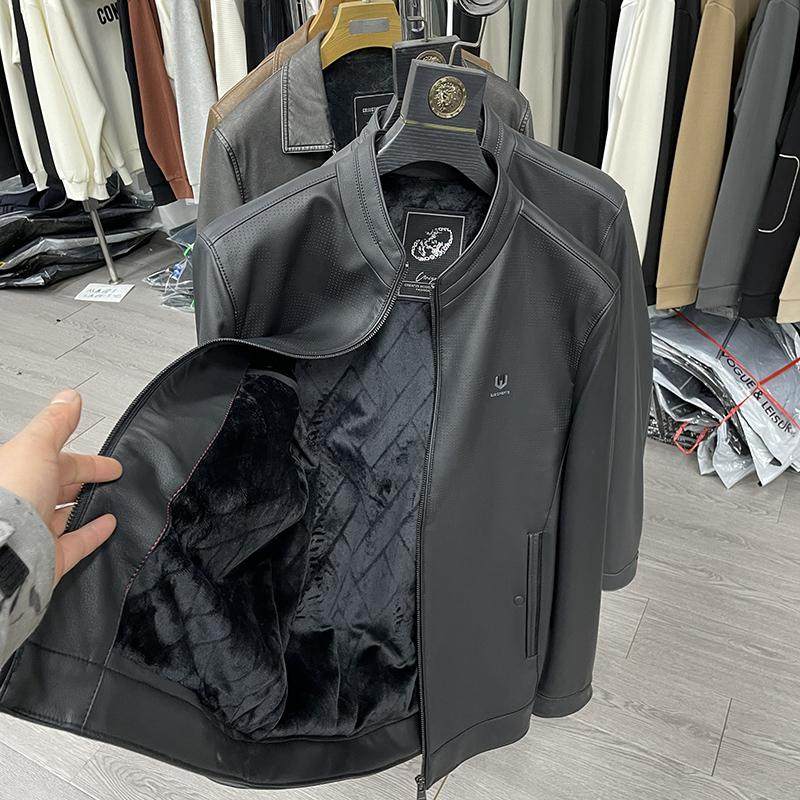 专柜、余单!春秋冬男士立领短款皮衣夹克加绒加厚皮衣商务高端男