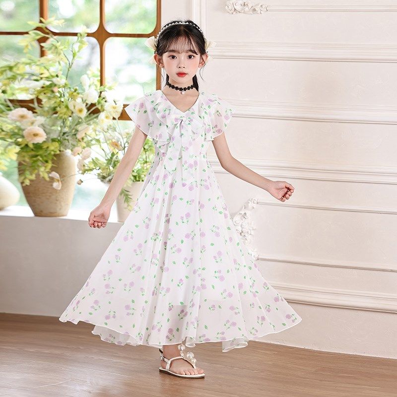 女童碎花连衣裙2j025新款洋气小学生女孩夏季超好看儿童度假雪纺