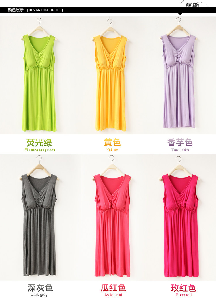 夏莫代尔新款中长款连衣裙带胸垫打底吊带背心裙宽松