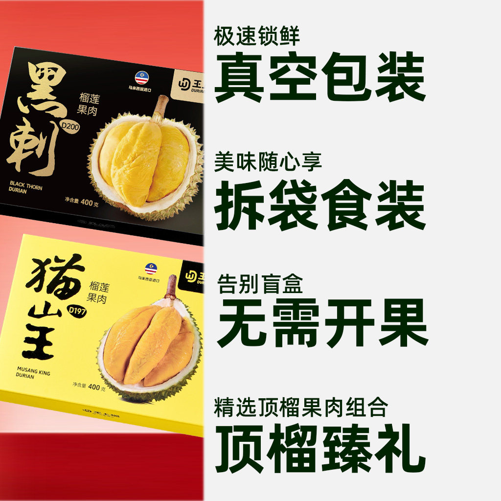 【送人佳礼】王上榴马来西亚D197猫山王D200黑刺榴莲果肉组合树熟