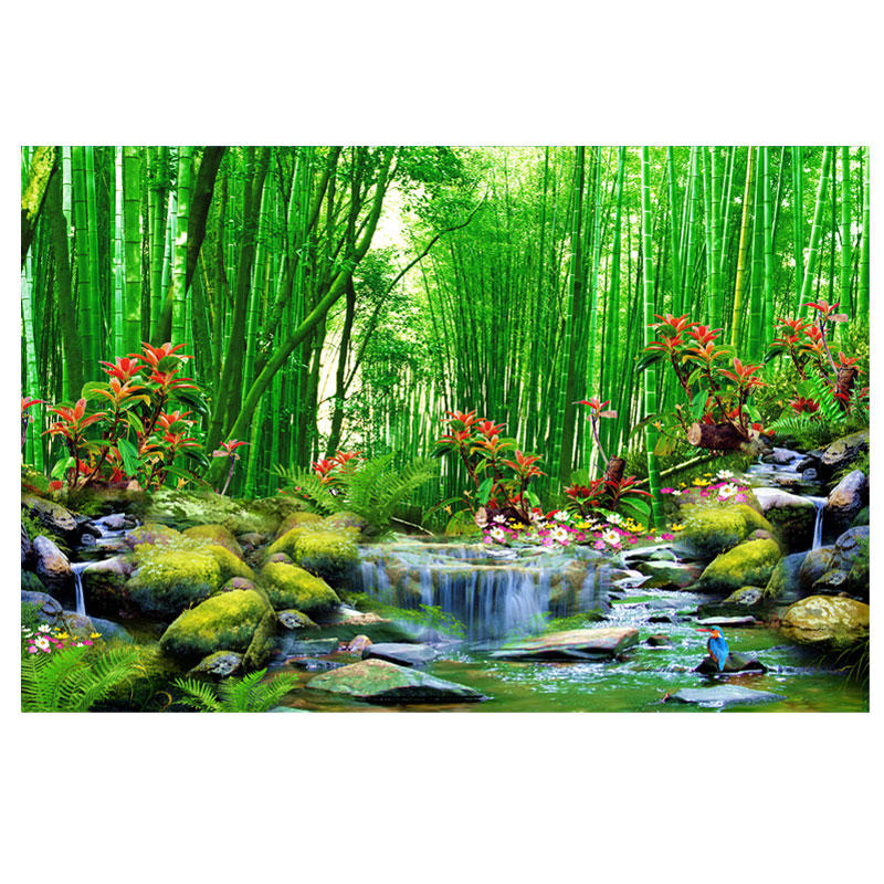 竹林山水风景壁画鸟语花香流水生财风水画客厅沙发背景墙贴纸画