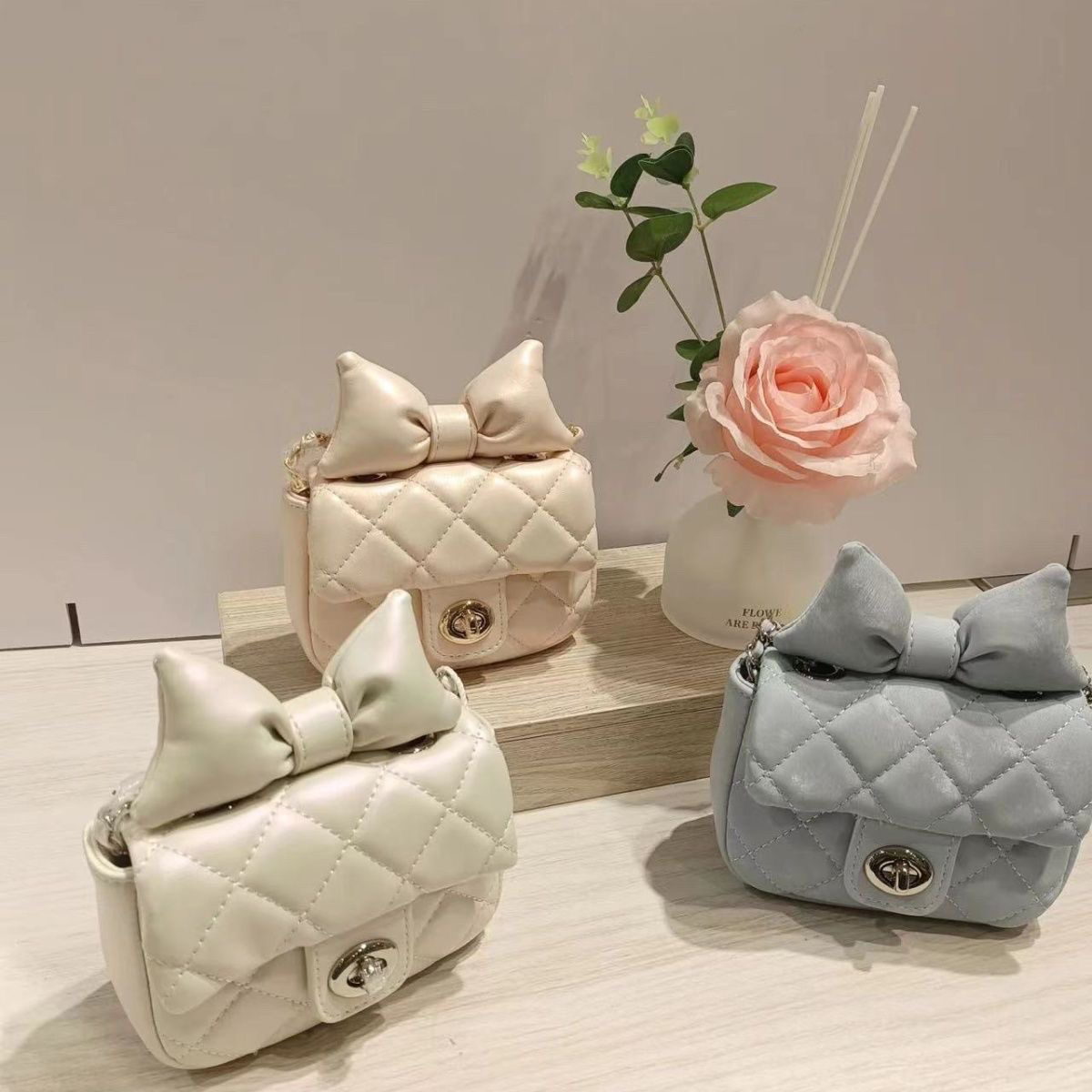 2024新款小众小方包夏季芭蕾运动风蝴蝶结小香风菱格迷你斜挎包
