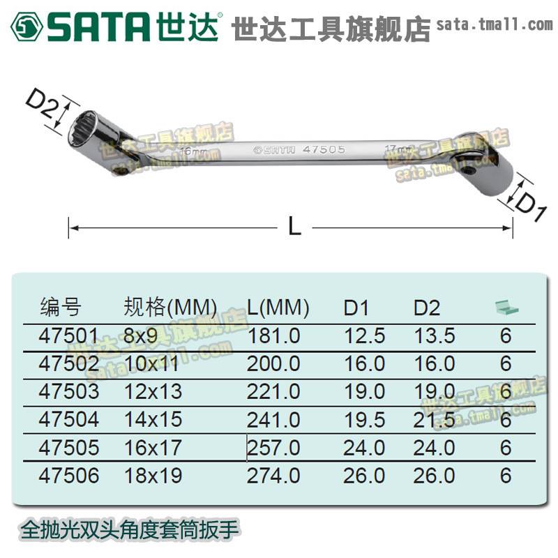 世达工具SATA 全抛光双头可转角度烟斗套筒扳手梅花扳手多用47501