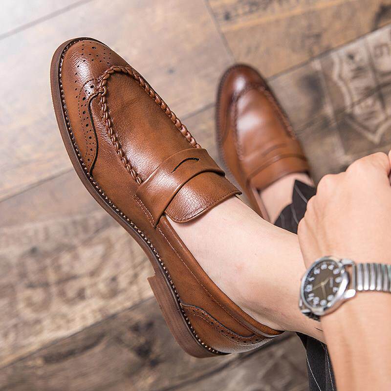 男鞋夏季透气2025新款一脚蹬男士豆豆鞋潮英伦商务休闲皮鞋男软底