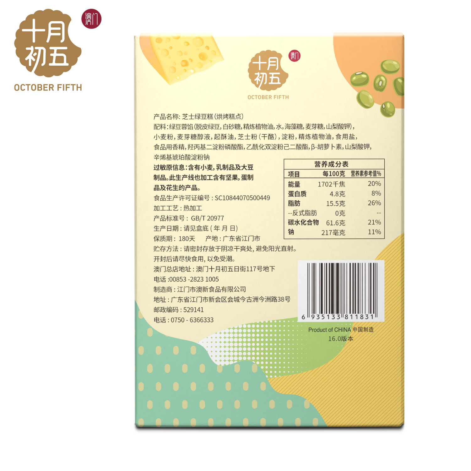 十月初五芝士绿豆糕120g